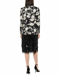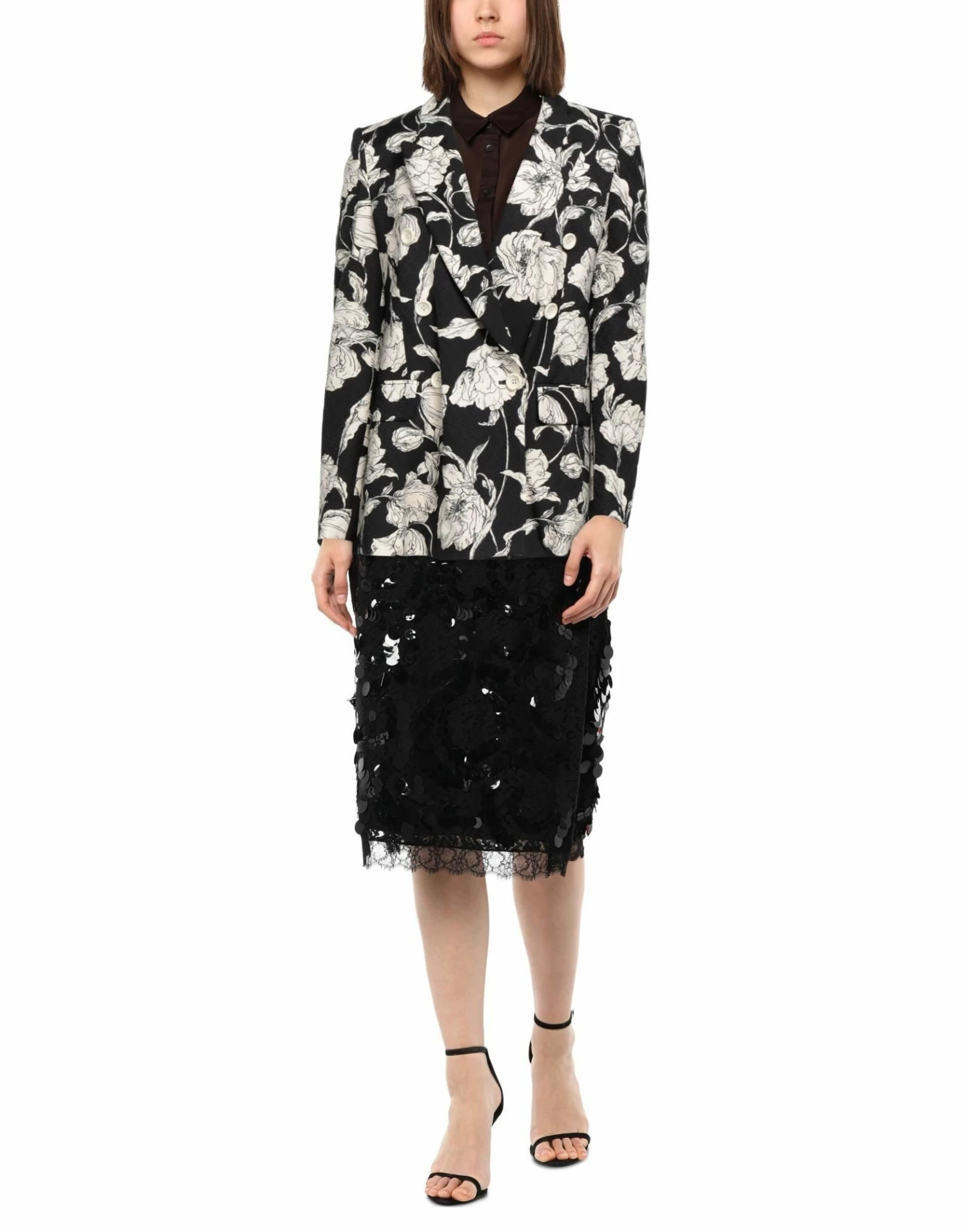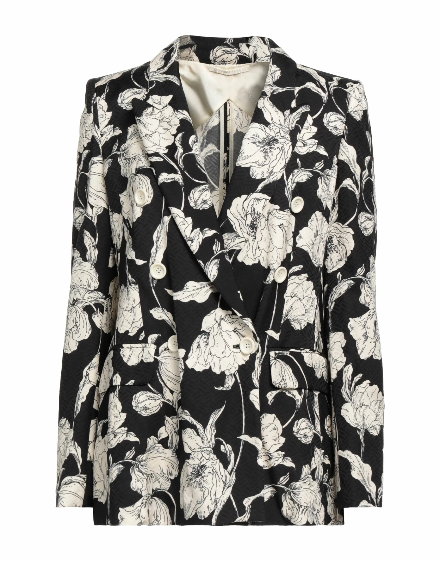 jacquard, plain weave, no appliqués, floral design, lapel collar, double-breasted, long sleeves, fully lined, button closing, multipockets