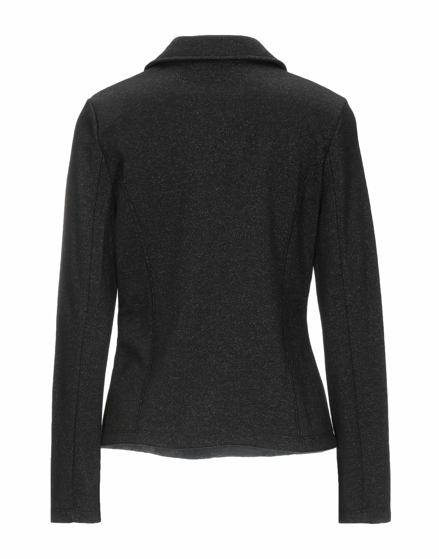 sweatshirt fleece, lamé, no appliqués, basic solid color, multipockets, button closing, lapel collar, single-breasted , long sleeves, unlined