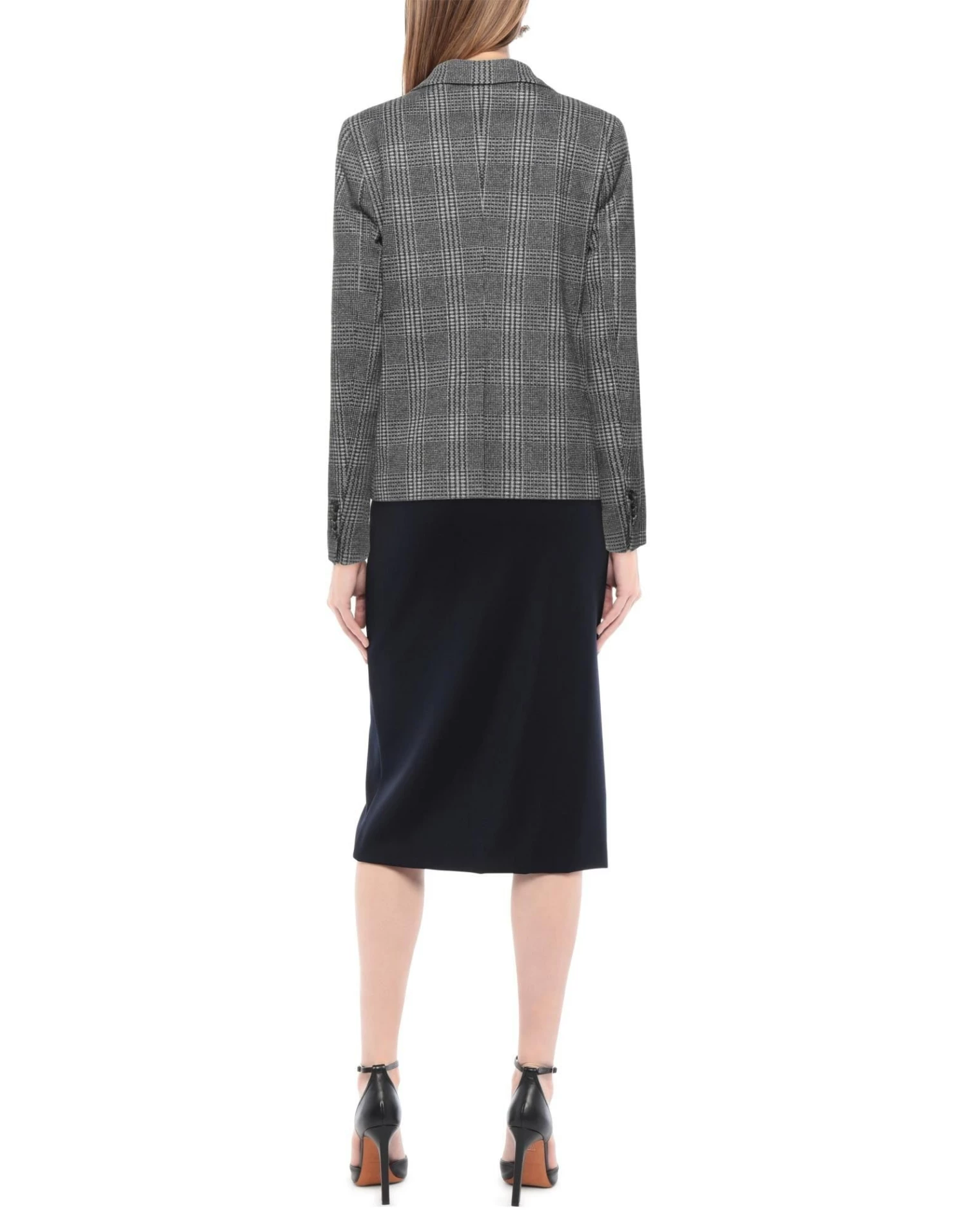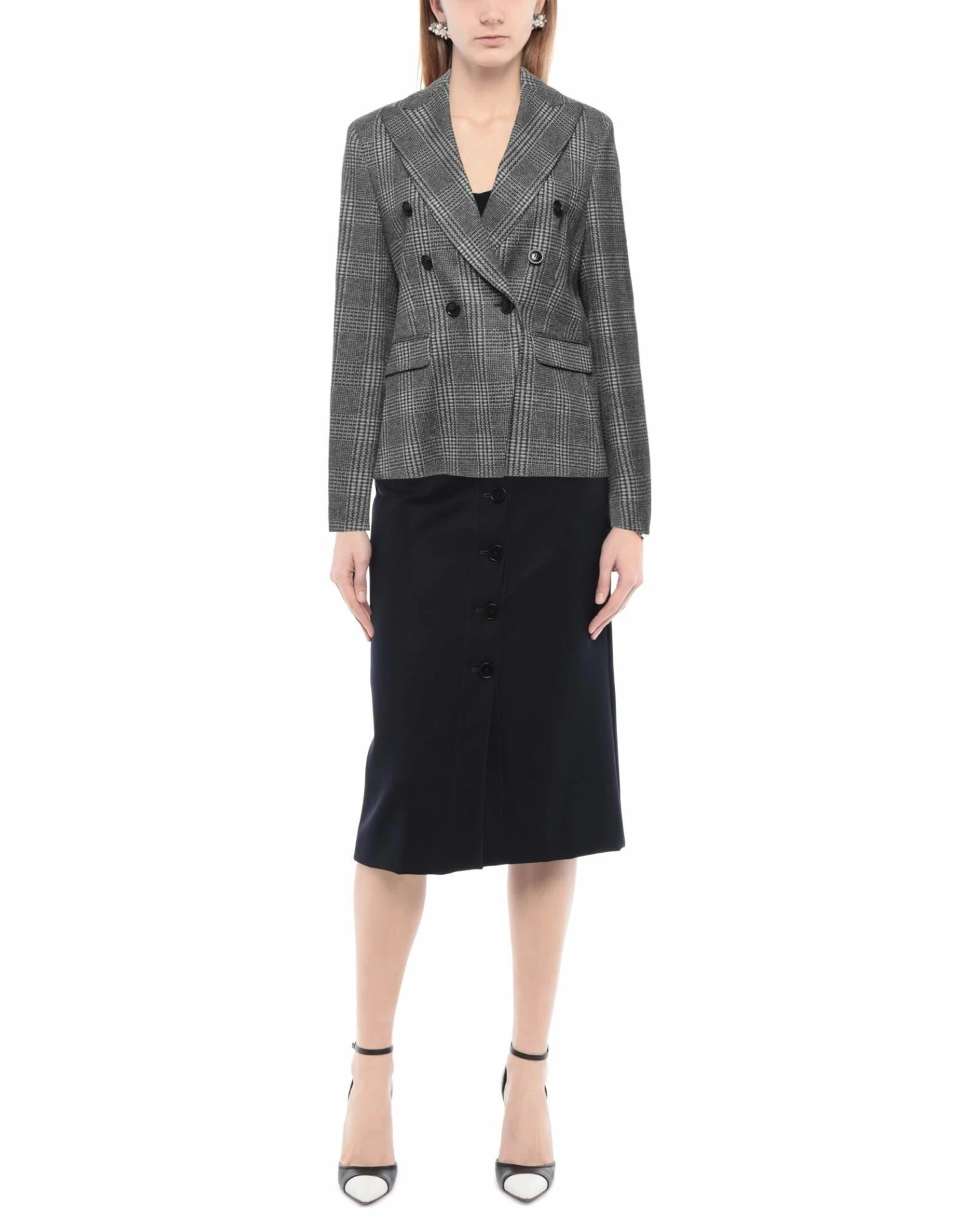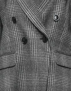 plain weave, no appliqués, glen plaid, lapel collar, double-breasted, long sleeves, fully lined, button closing, multipockets, stretch