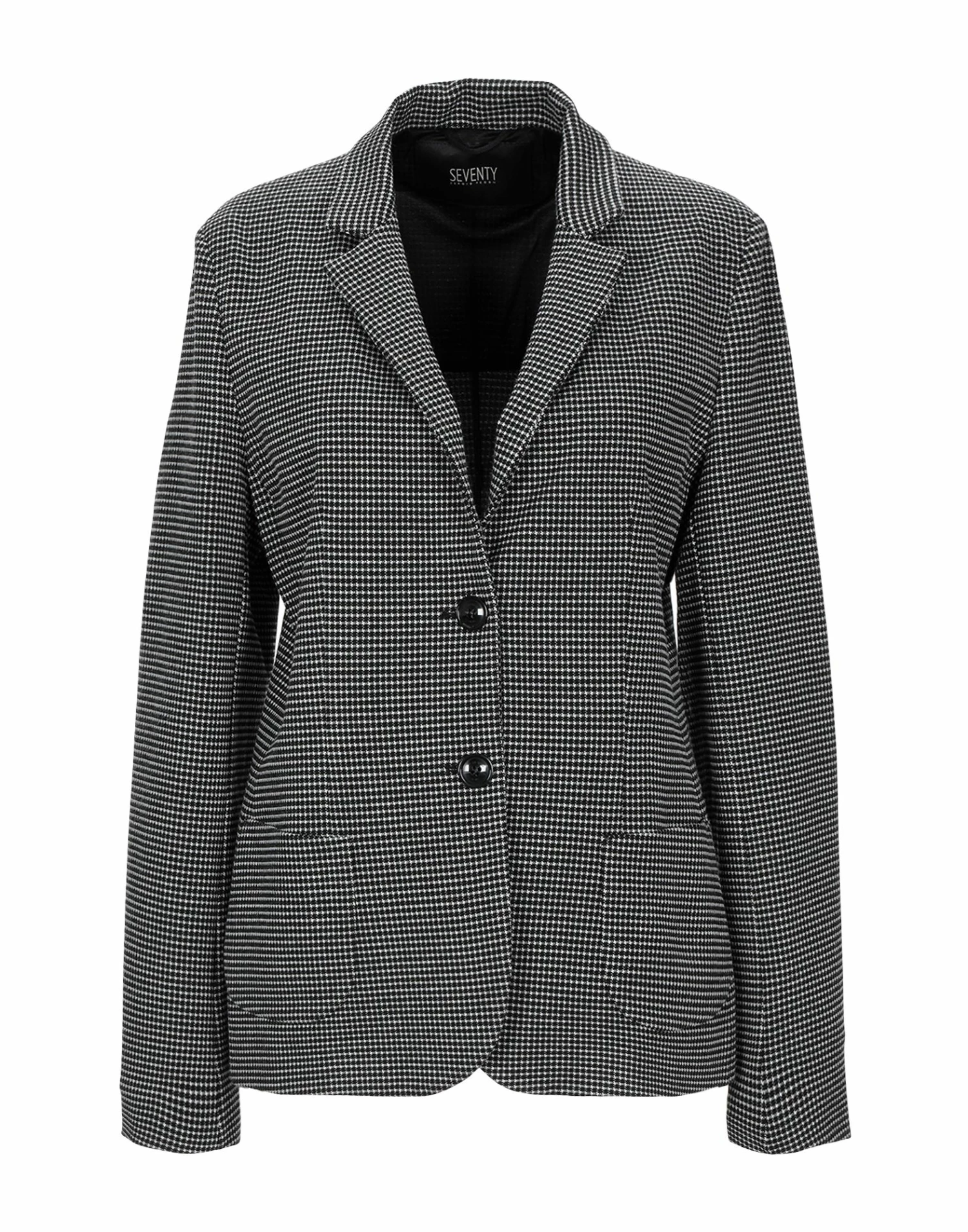 knitted, darts, houndstooth, multipockets, 2 buttons, lapel collar, single-breasted , long sleeves, semi-lined, stretch