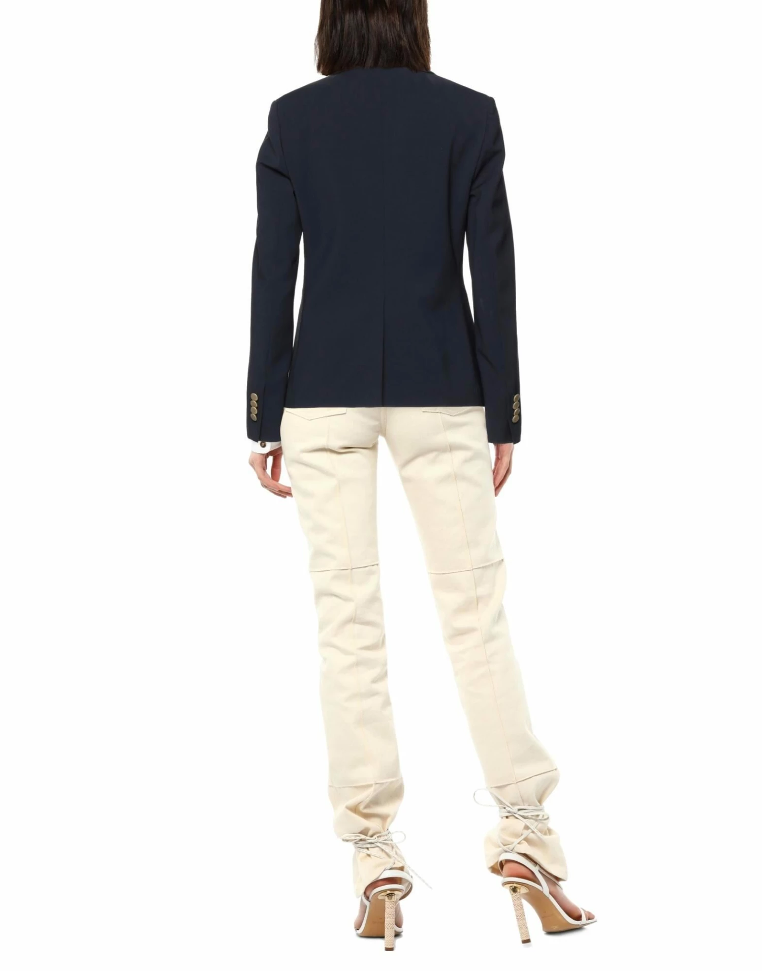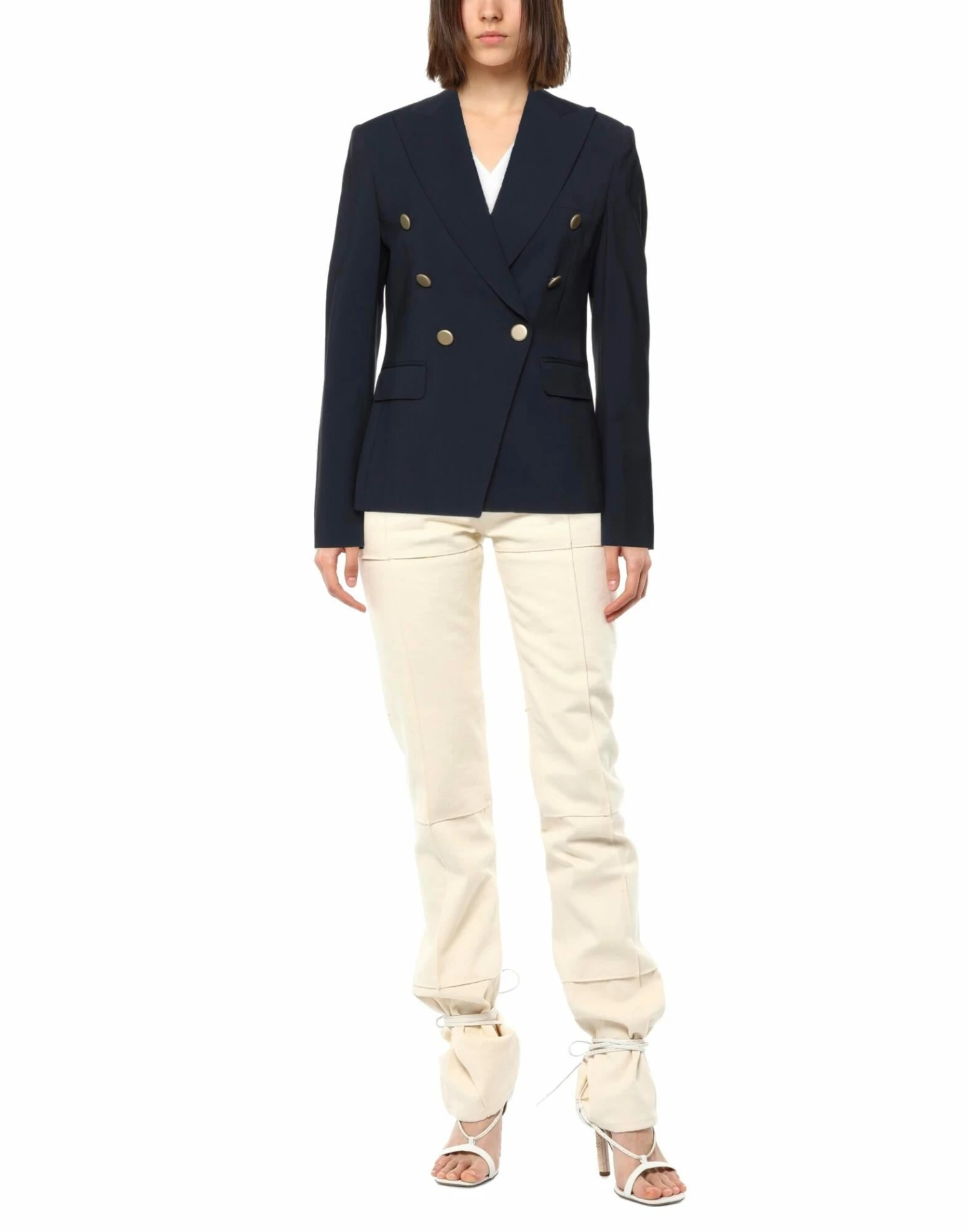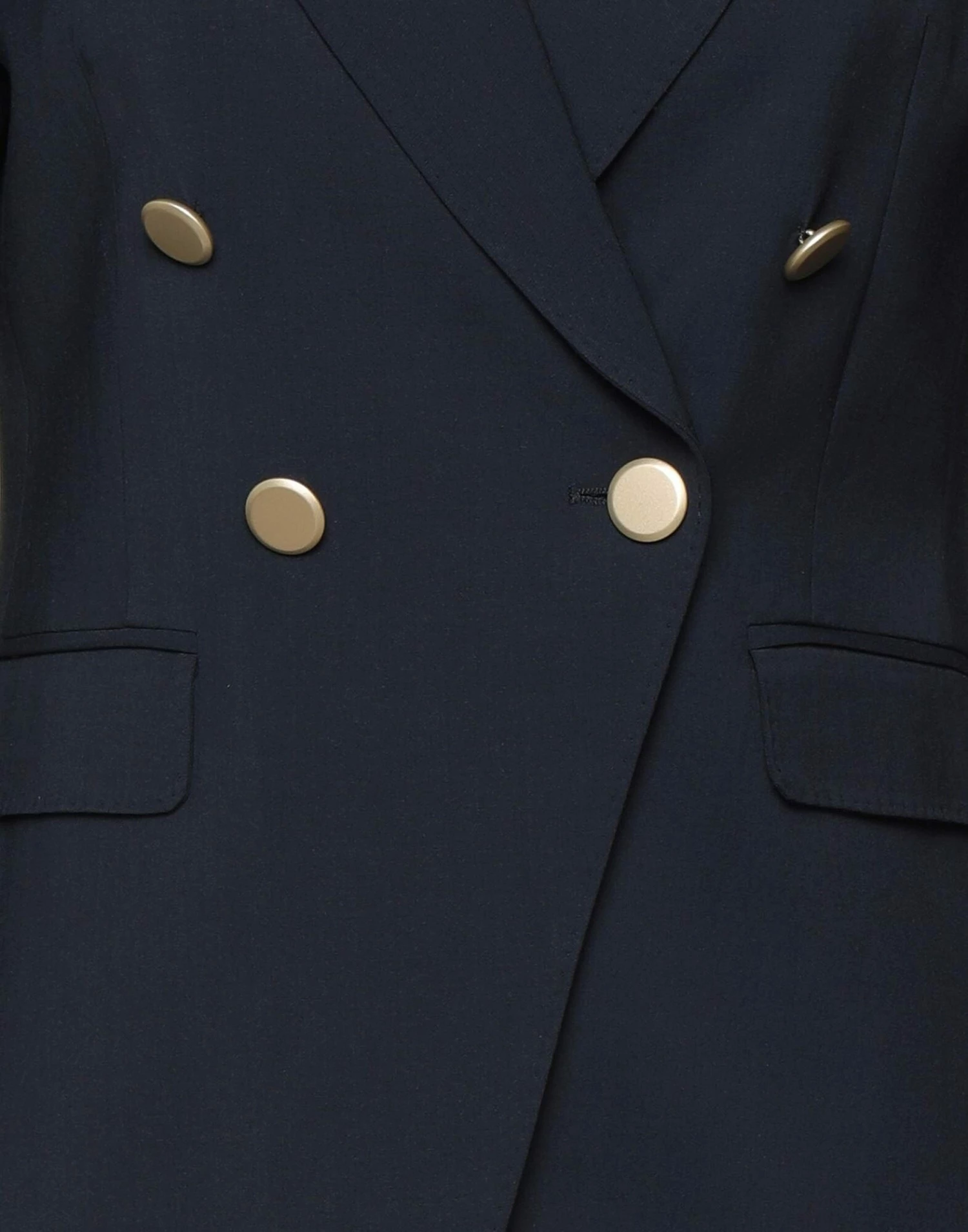 crepe, no appliqués, solid color, lapel collar, double-breasted, long sleeves, fully lined, button closing, multipockets, stretch