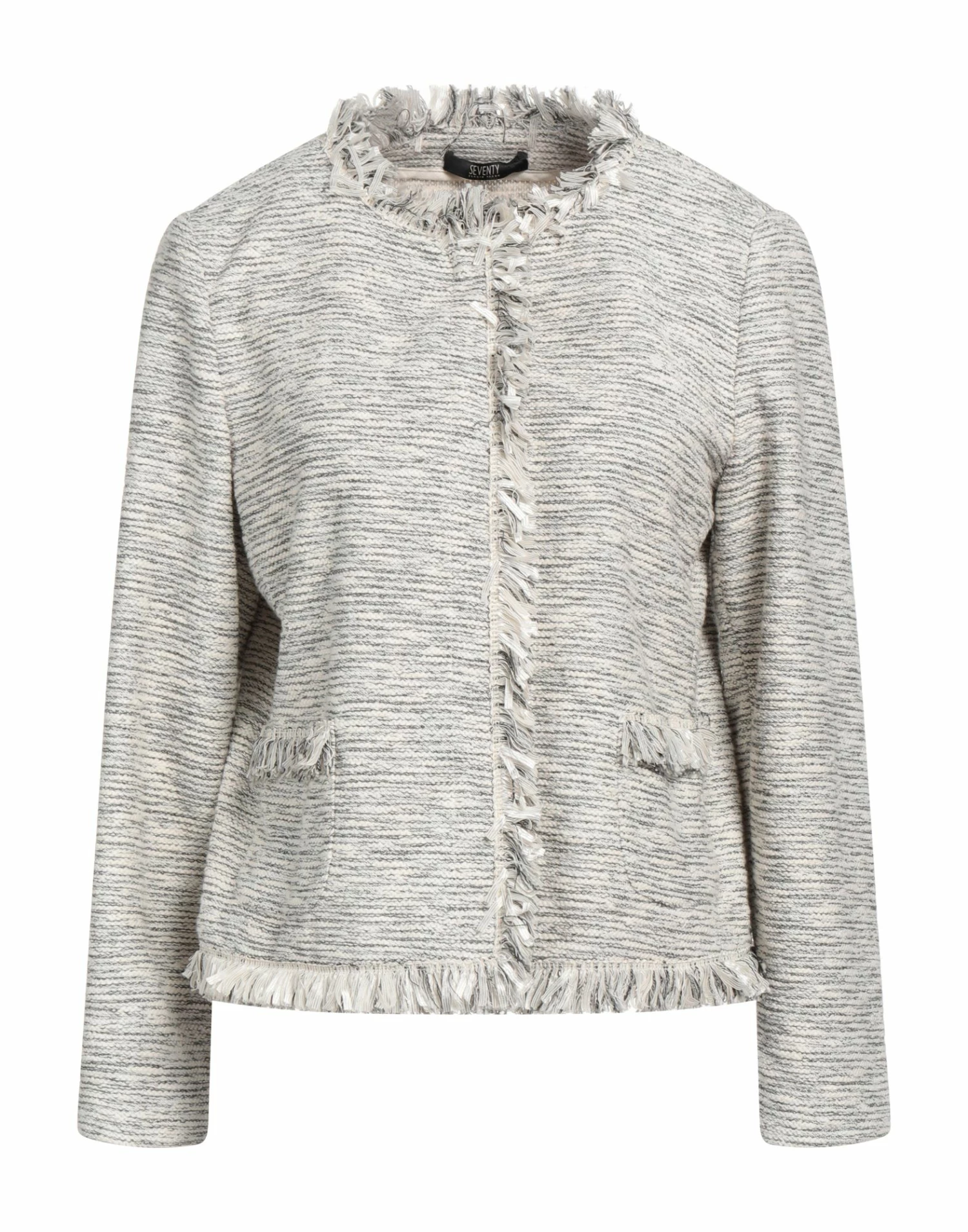 tweed, fringes, multicolor pattern, round collar, single-breasted , long sleeves, unlined, snap buttons fastening, multipockets