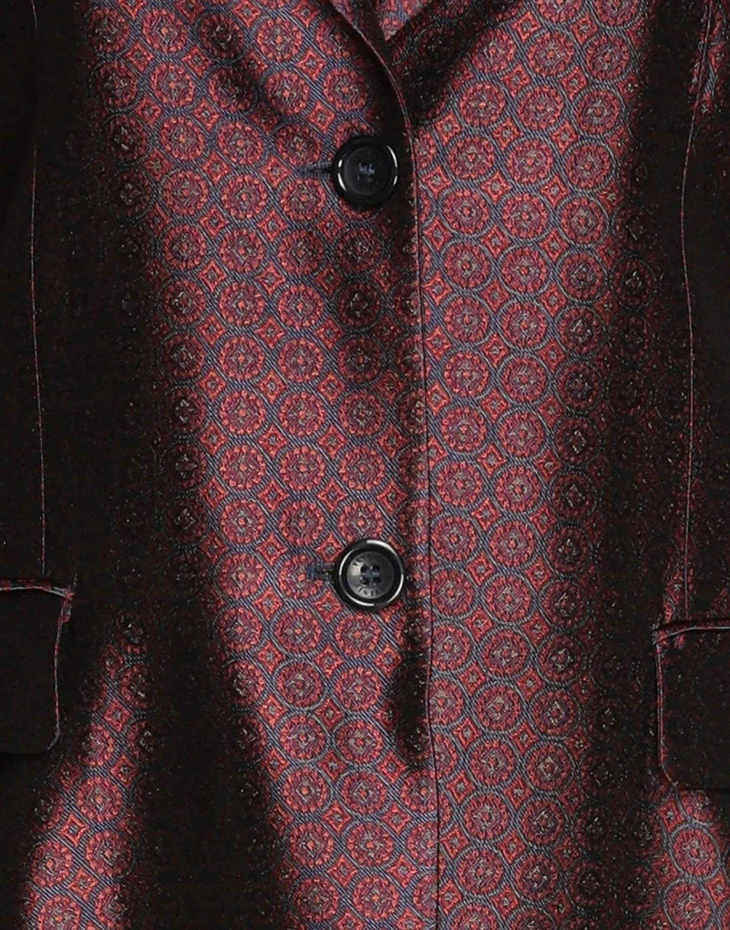 jacquard, plain weave, no appliqués, geometric design, lapel collar, single-breasted , long sleeves, fully lined, 2 buttons, multipockets