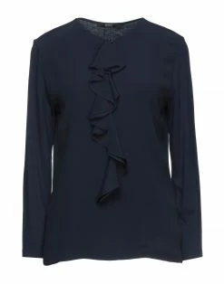 jersey, crepe, ruffles, basic solid color, front closure, button closing, long sleeves, round collar, no pockets, contains non-textile parts of animal origin, stretch