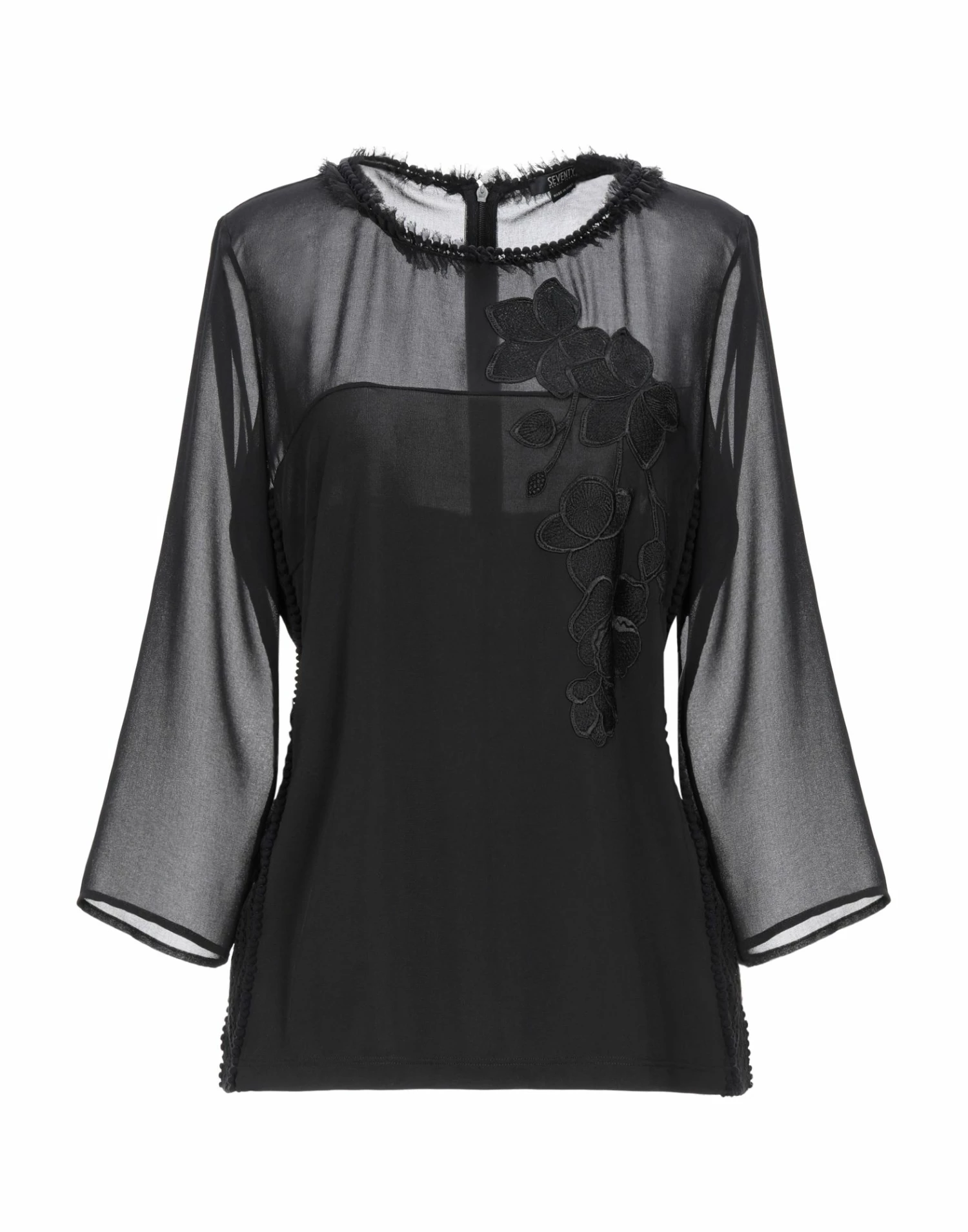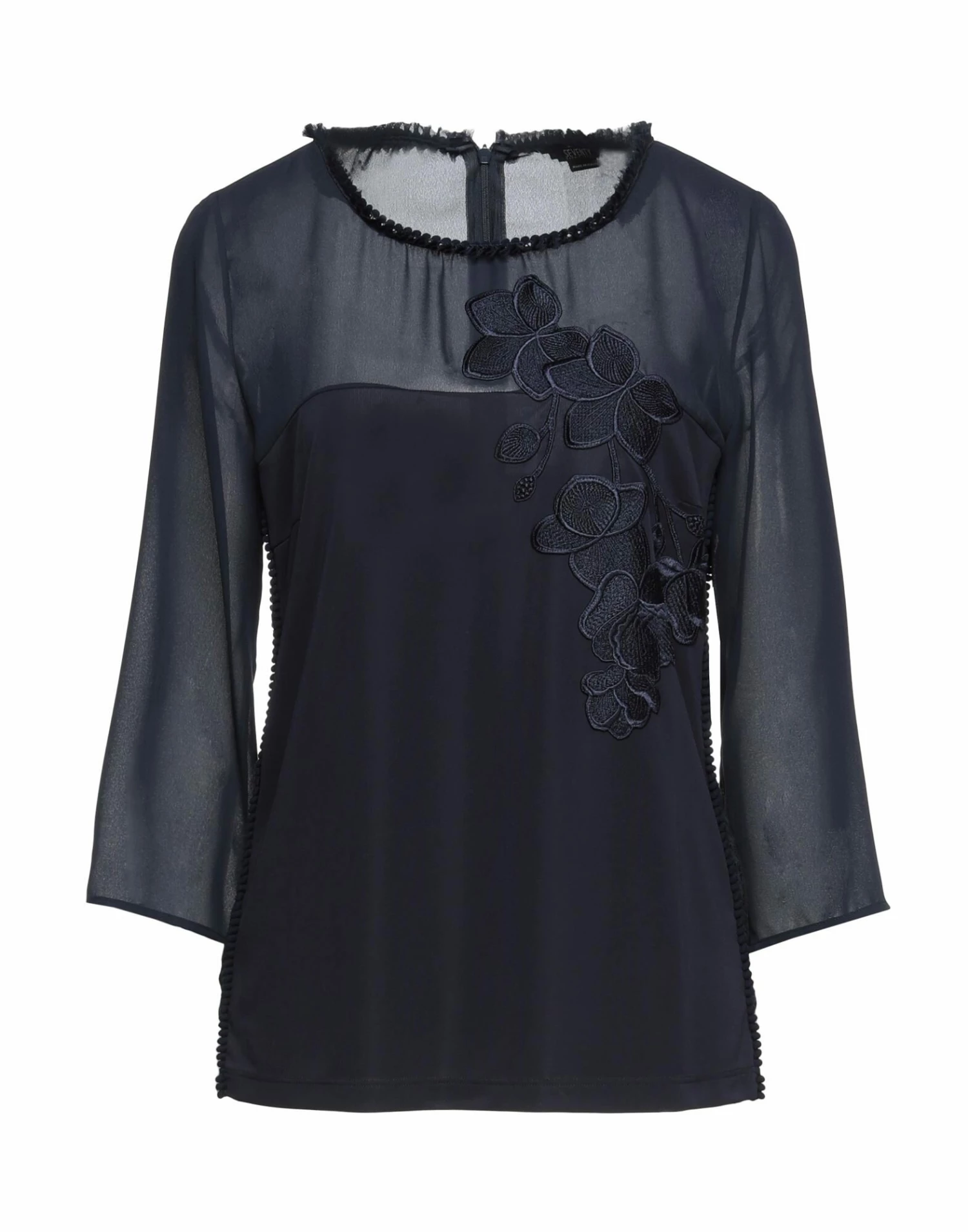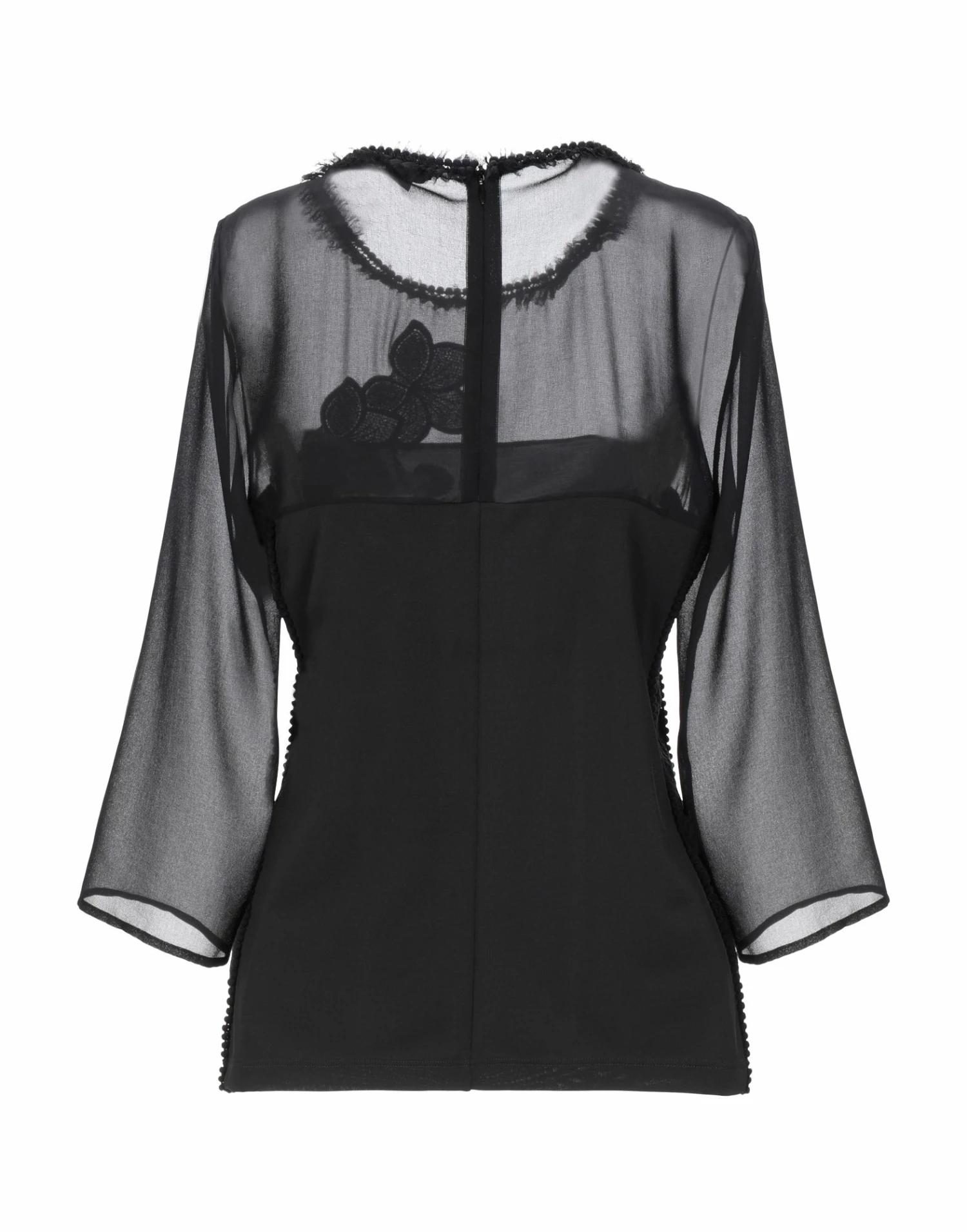 synthetic jersey, crepe, contrasting applications, round collar, 3/4 length sleeves, zipper closure, no pockets, stretch, floral design