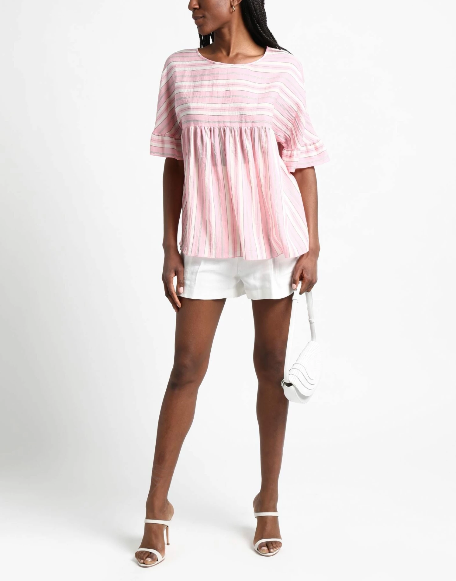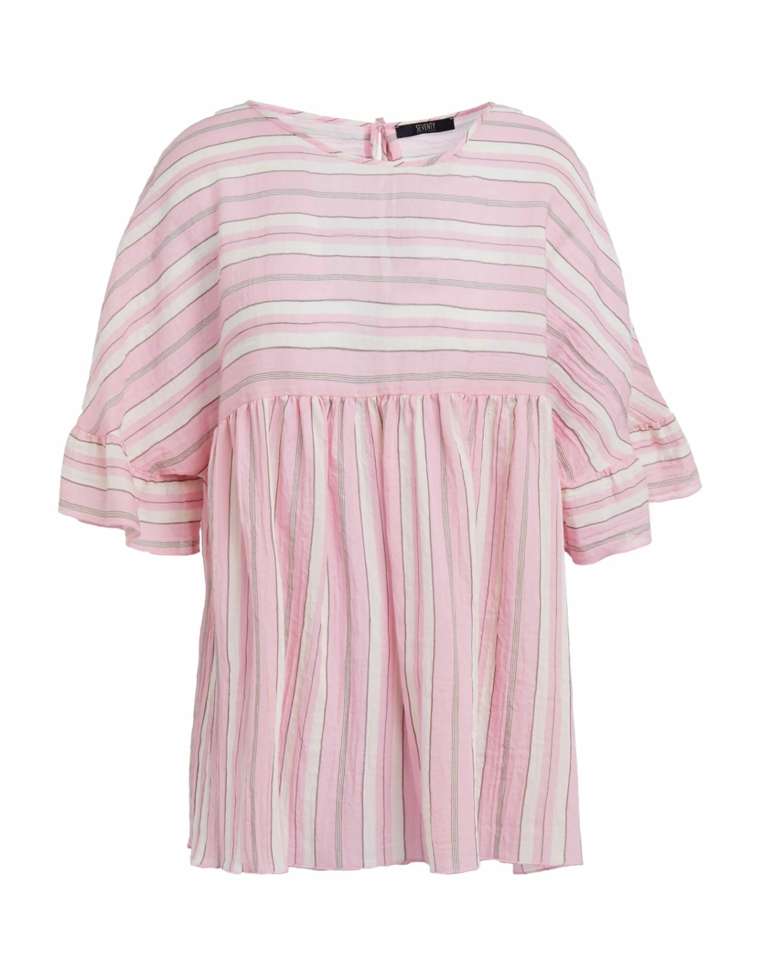 plain weave, no appliqués, stripes, round collar, short sleeves