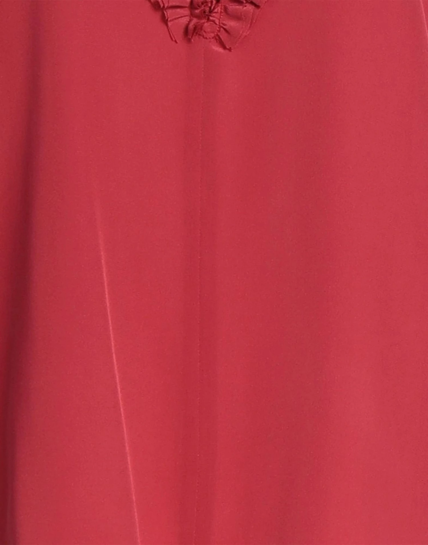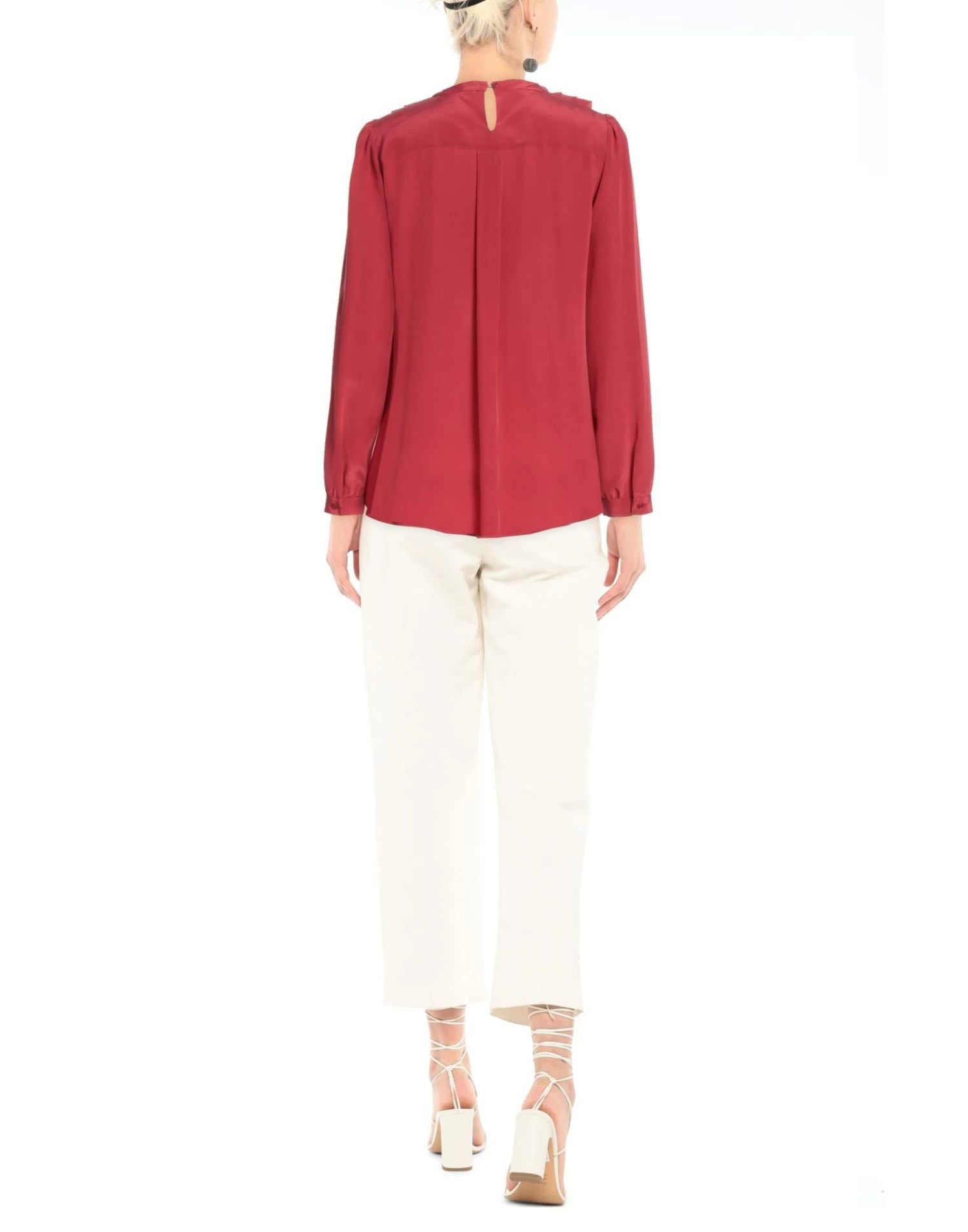 crepe, ruffles, solid color, deep neckline, long sleeves, buttoned cuffs, unlined, 1 button, no pockets