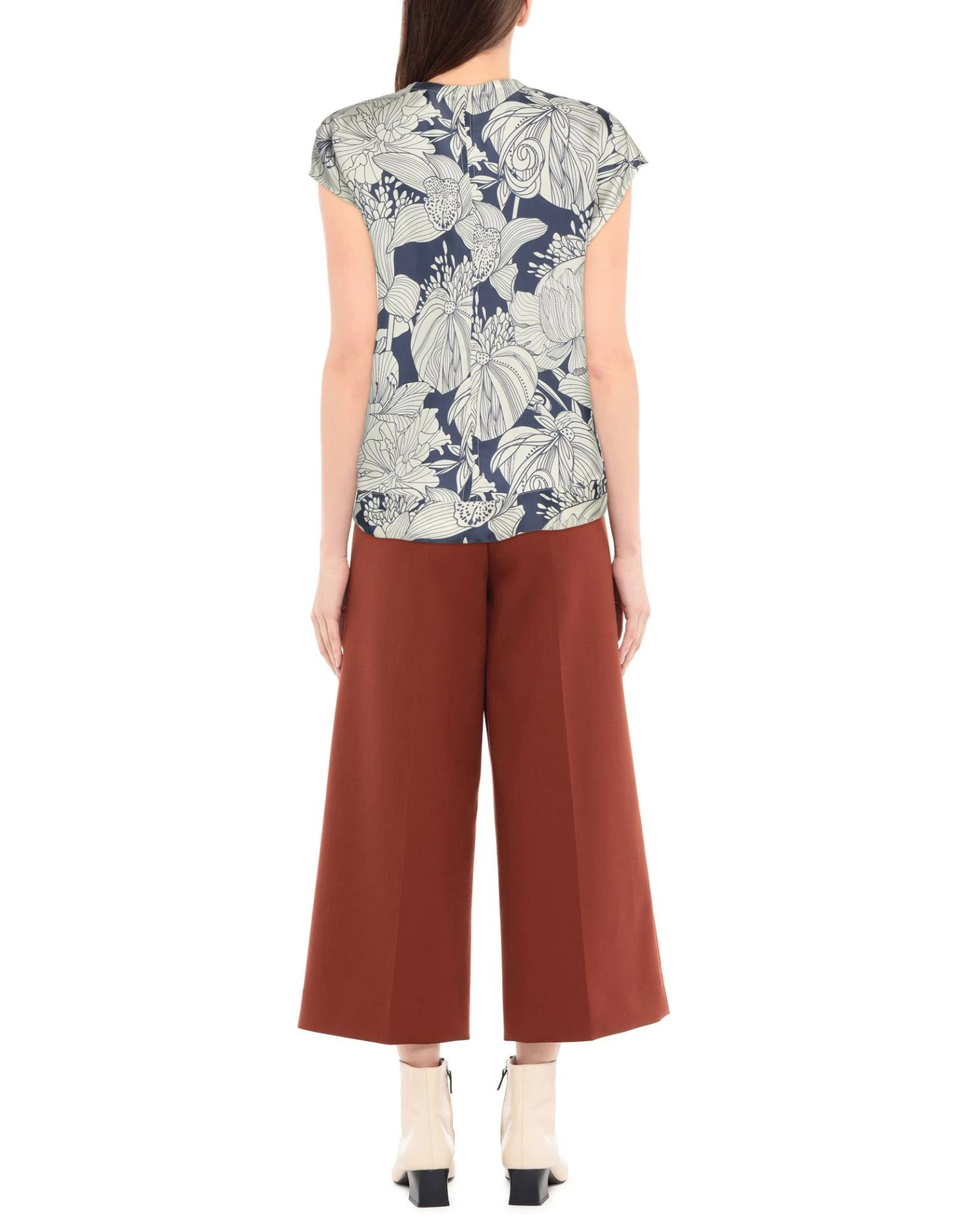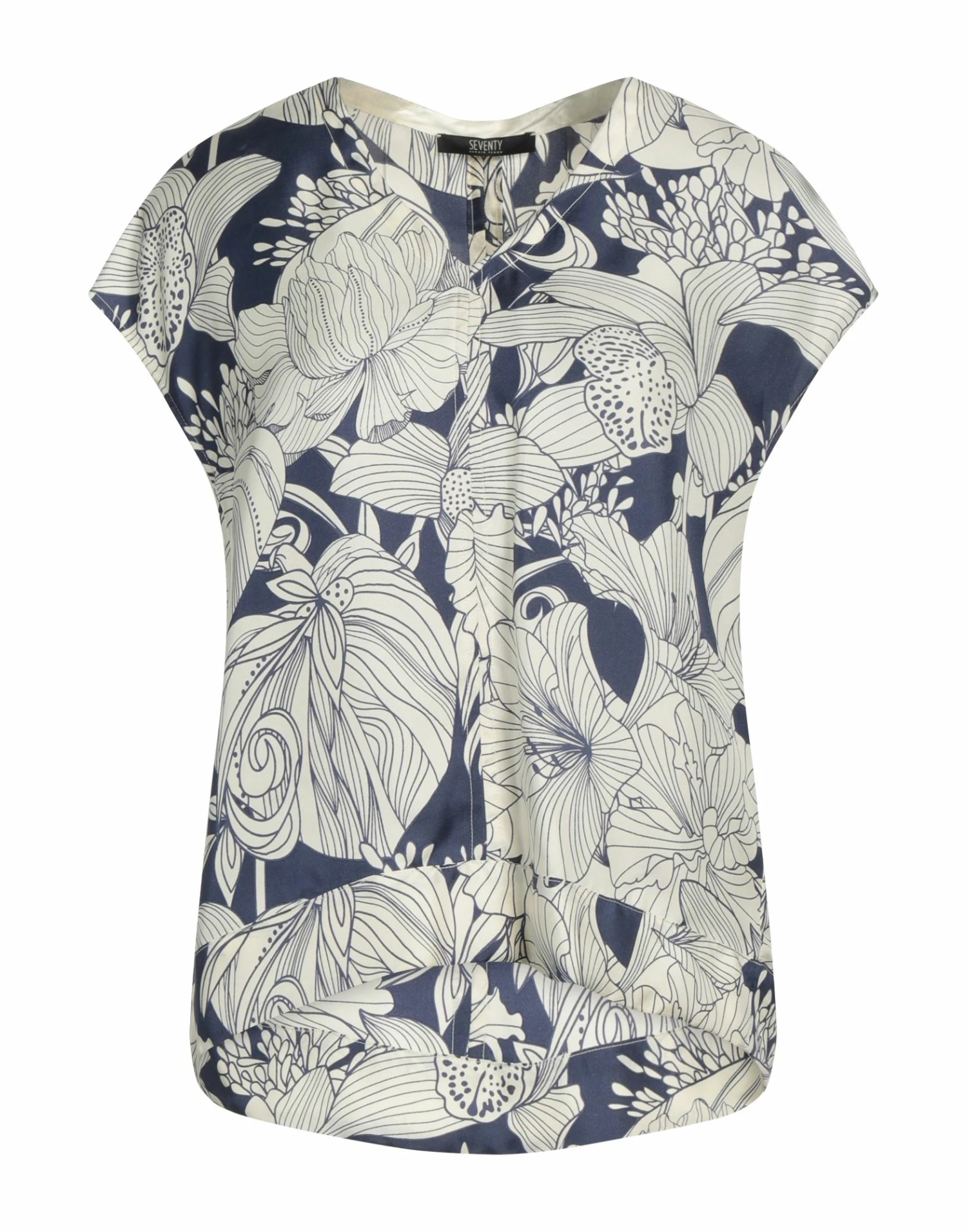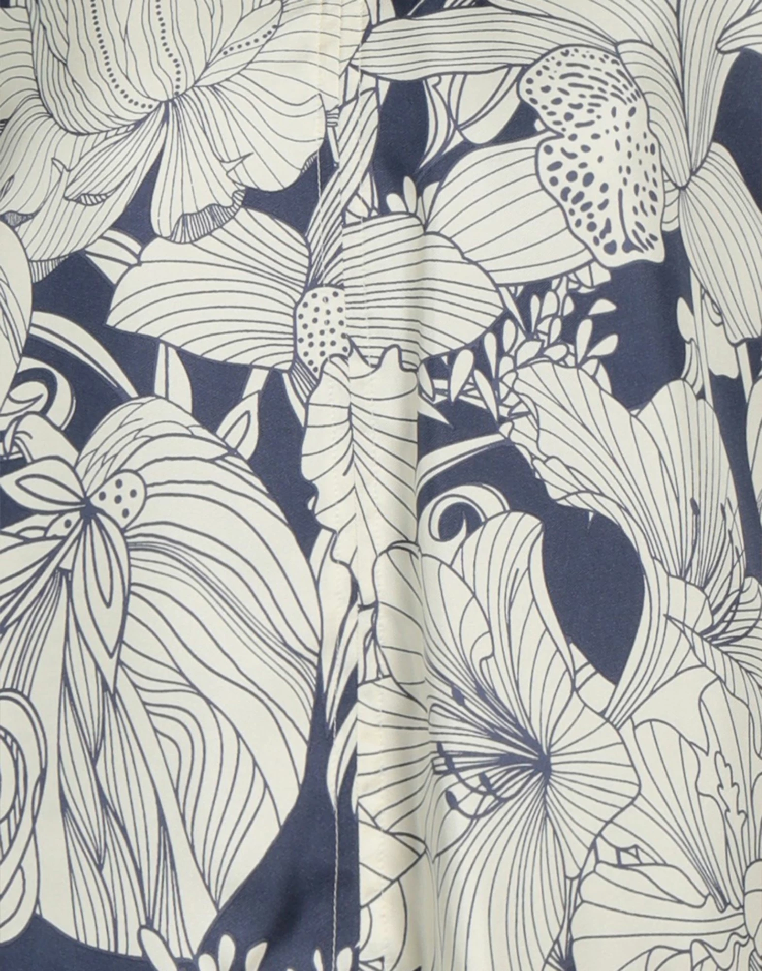 twill, no appliqués, floral design, v-neck, short sleeves, no pockets