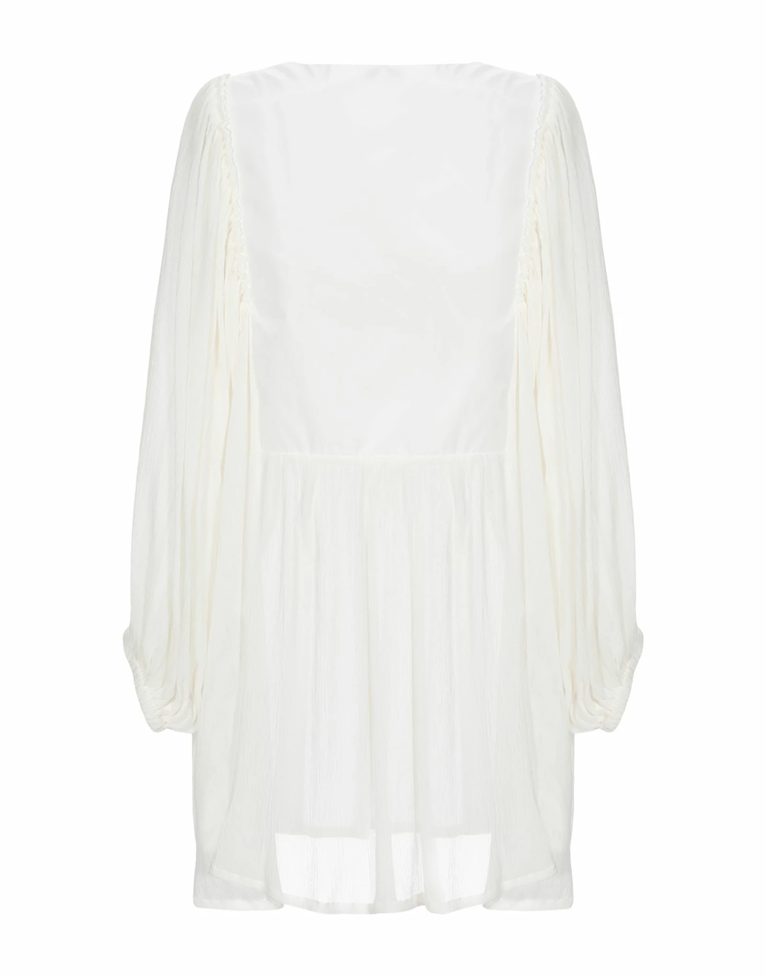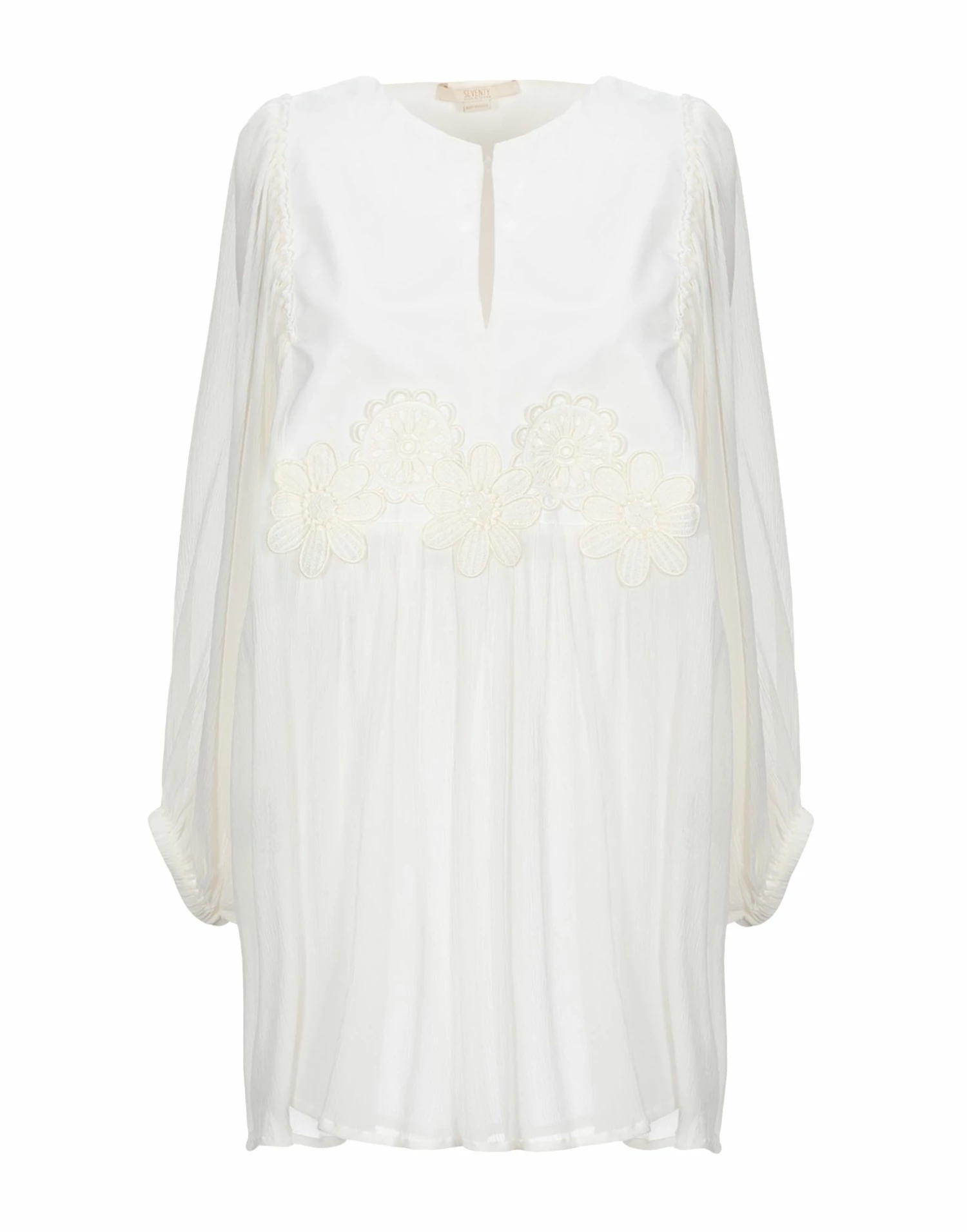 crepe, techno fabric, embroidered detailing, frills, solid color, lightweight sweater, long sleeves, v-neck, no pockets