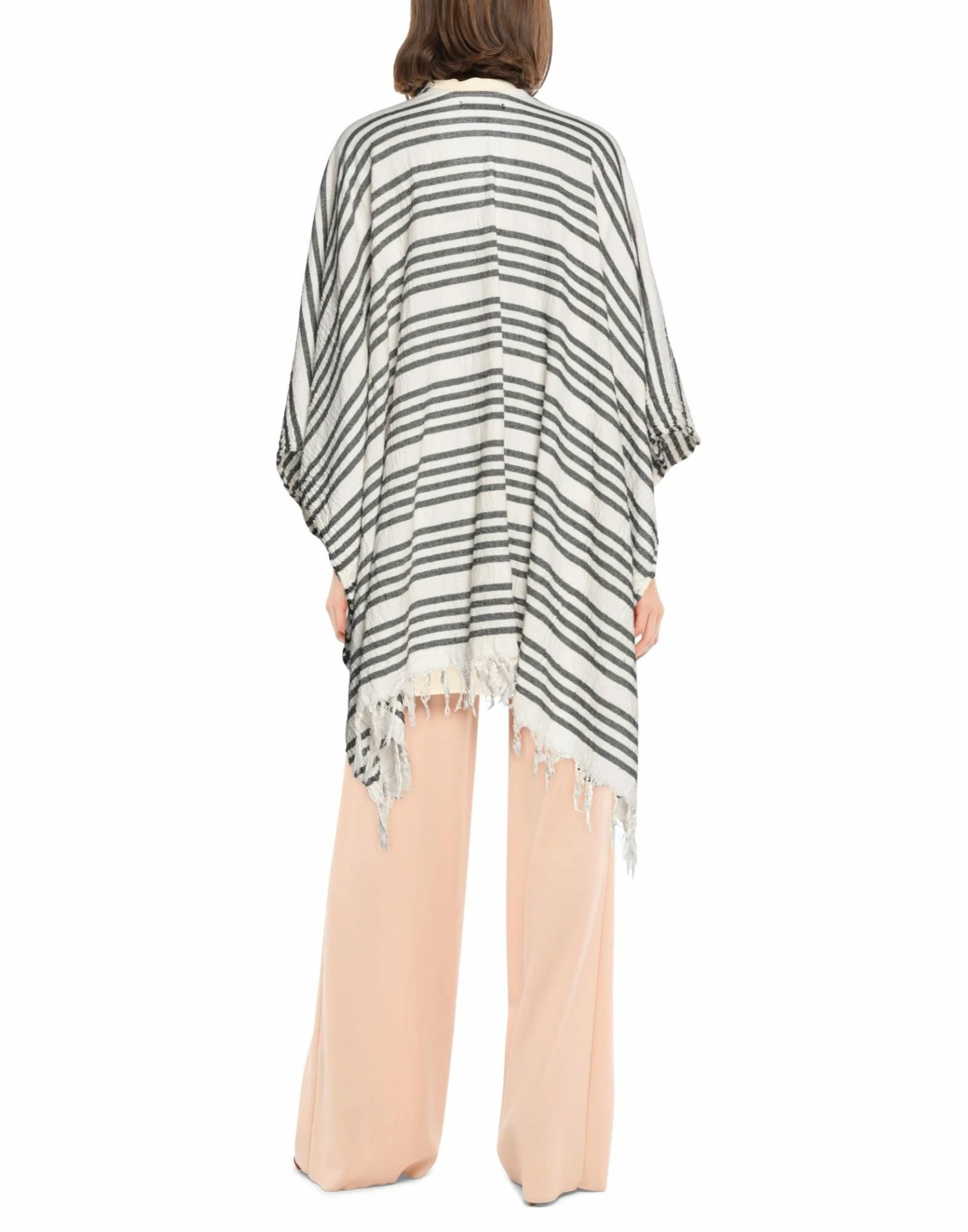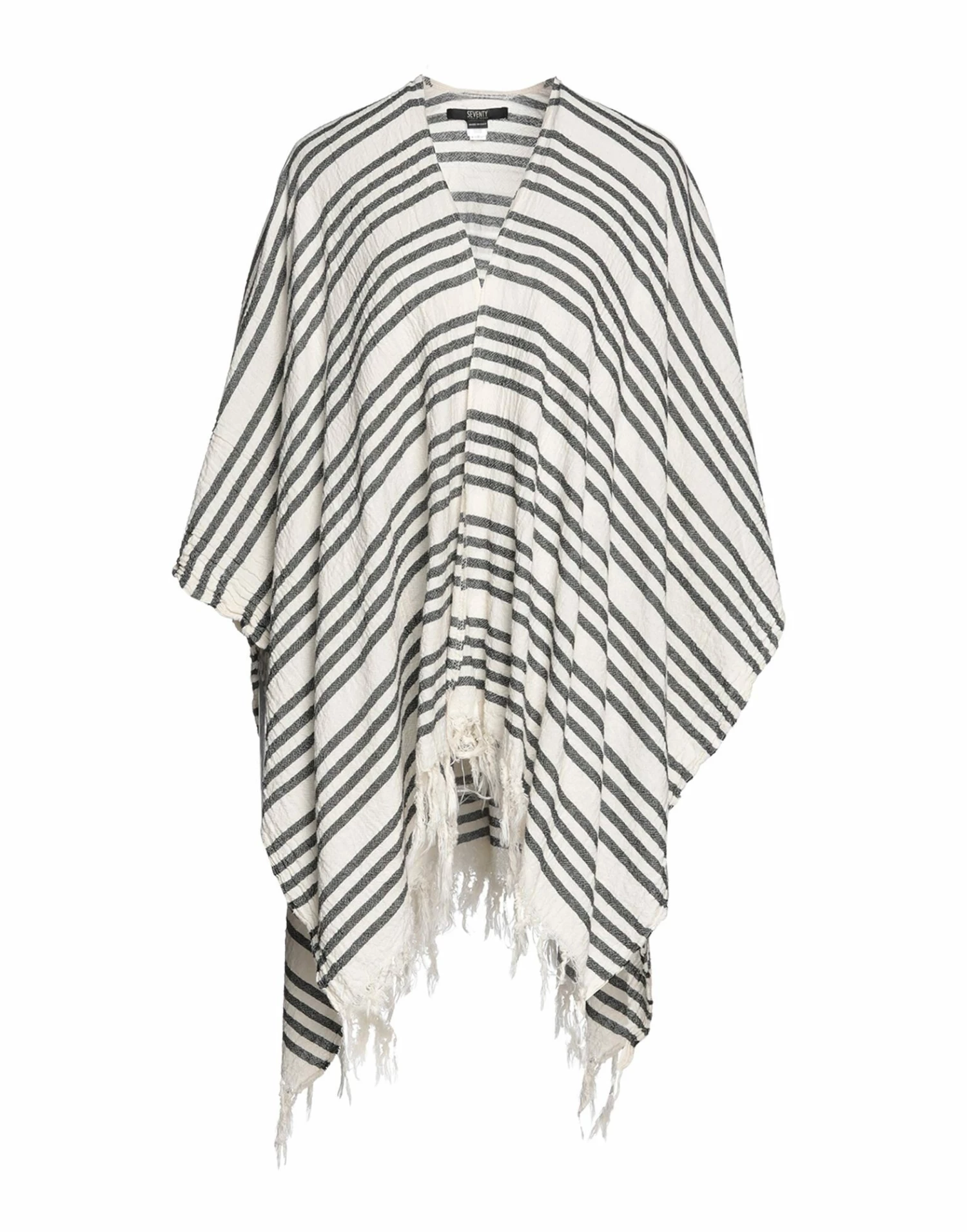 plain weave, fringes, stripes, deep neckline, single-breasted , sleeveless, no pockets