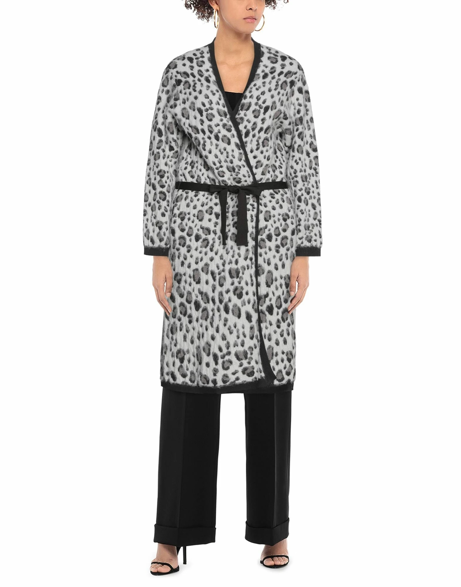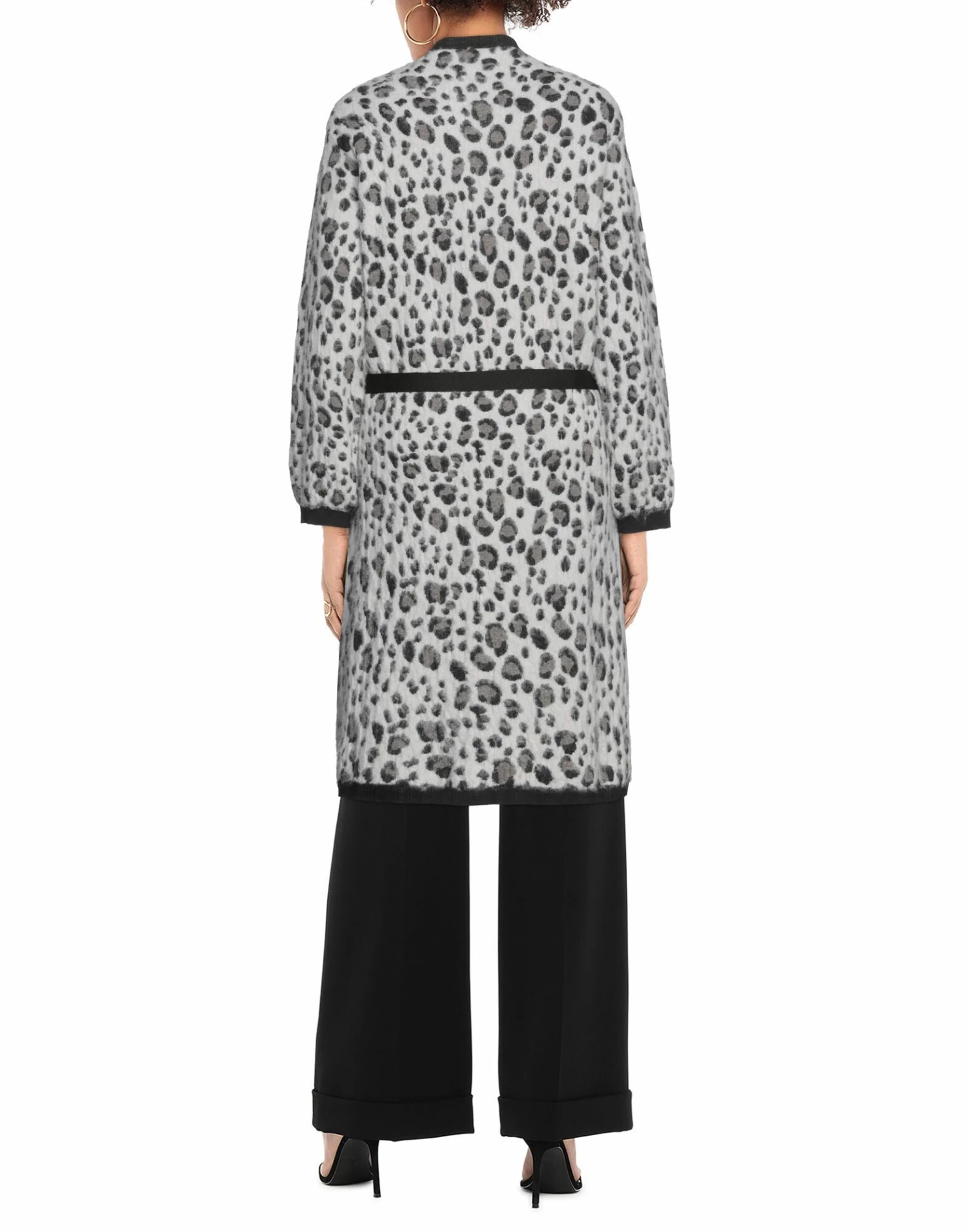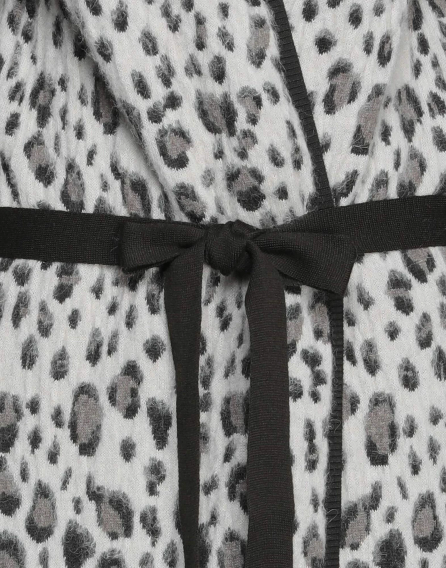 knitted, belt, leopard-print, long sleeves, multipockets, deep neckline, lightweight knit