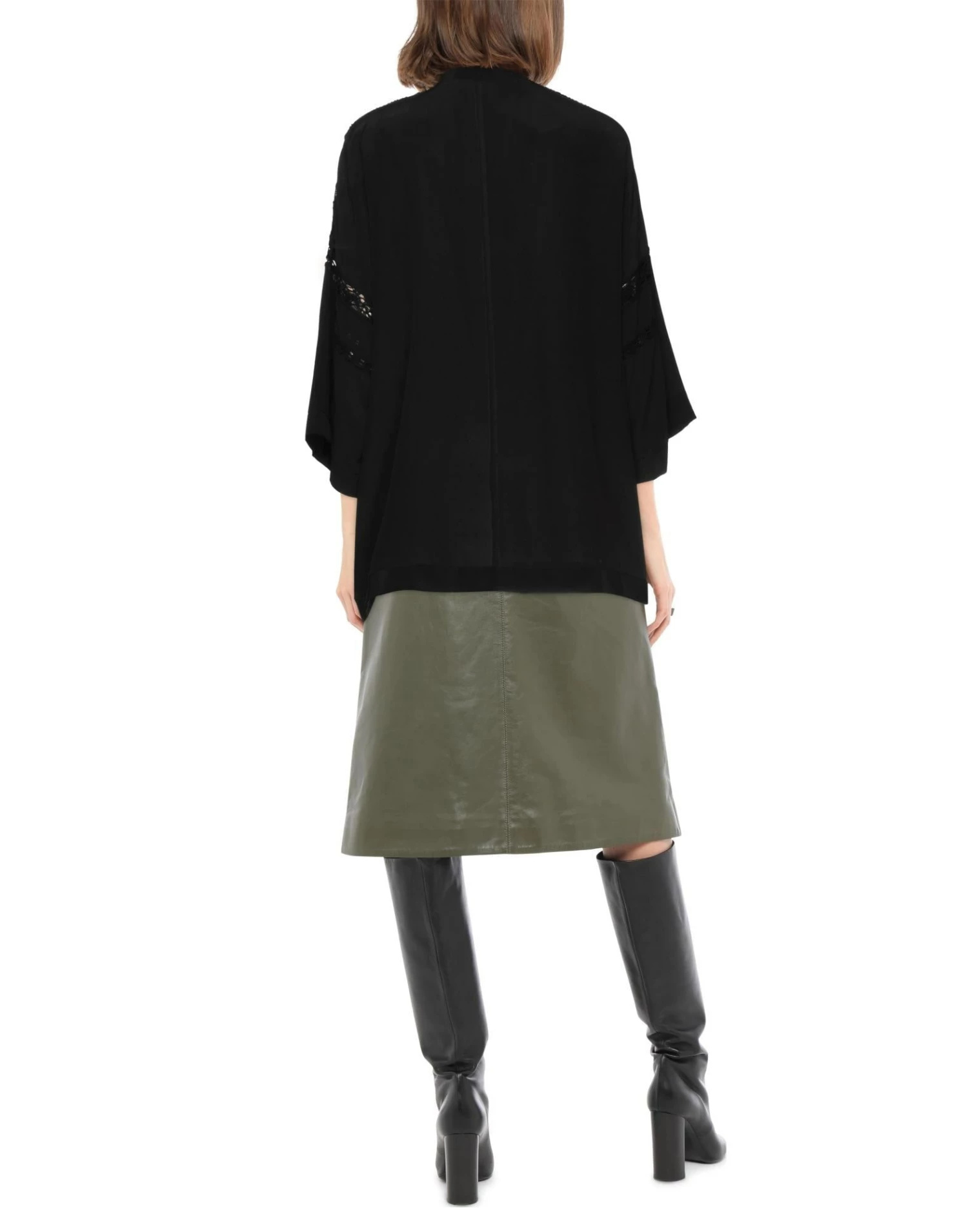 lace, crepe, no appliqués, solid color, deep neckline, 3/4 length sleeves, multipockets