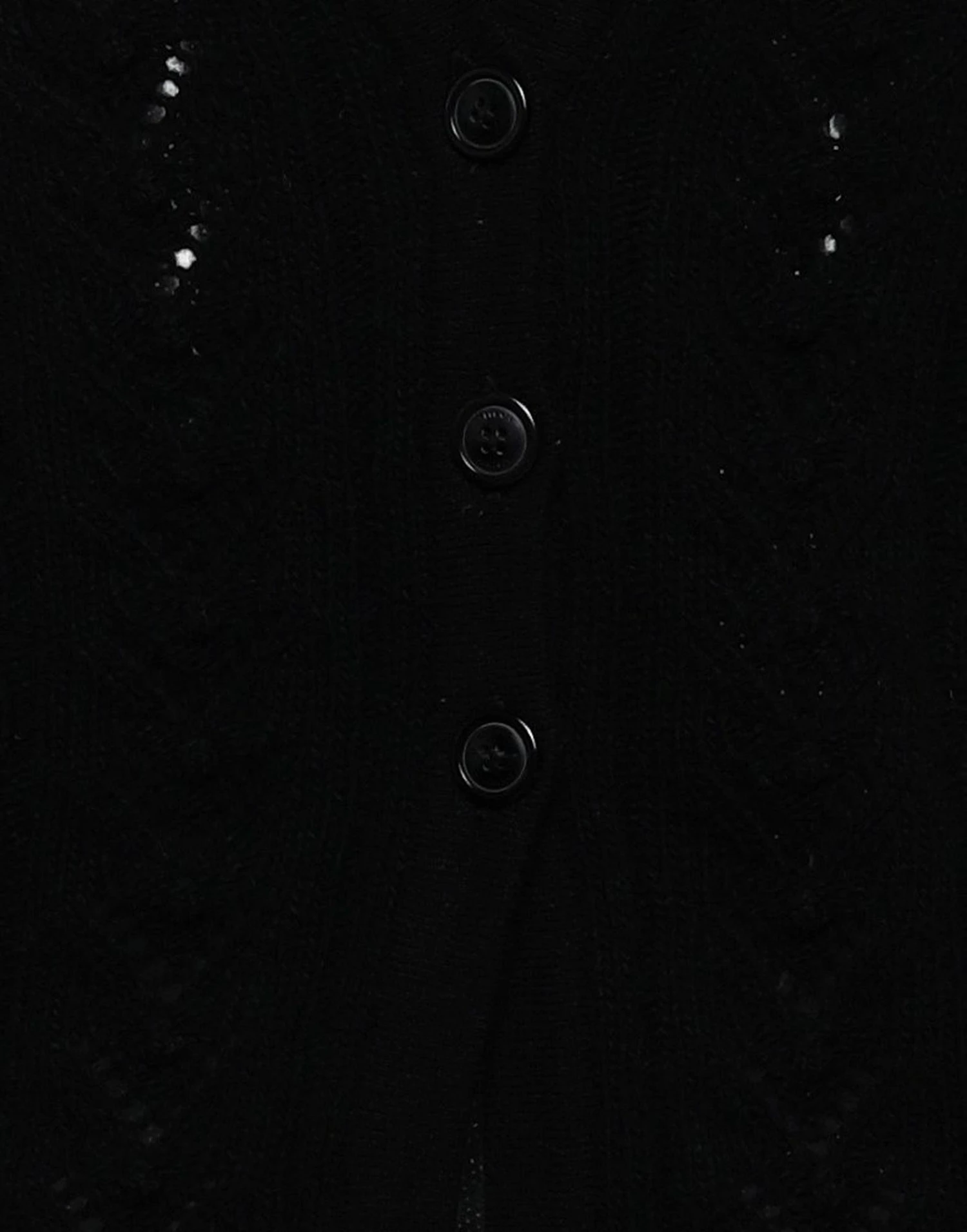 knitted, cable stitch, lightweight knit, no appliqués, solid color, v-neck, long sleeves, 3 buttons, no pockets