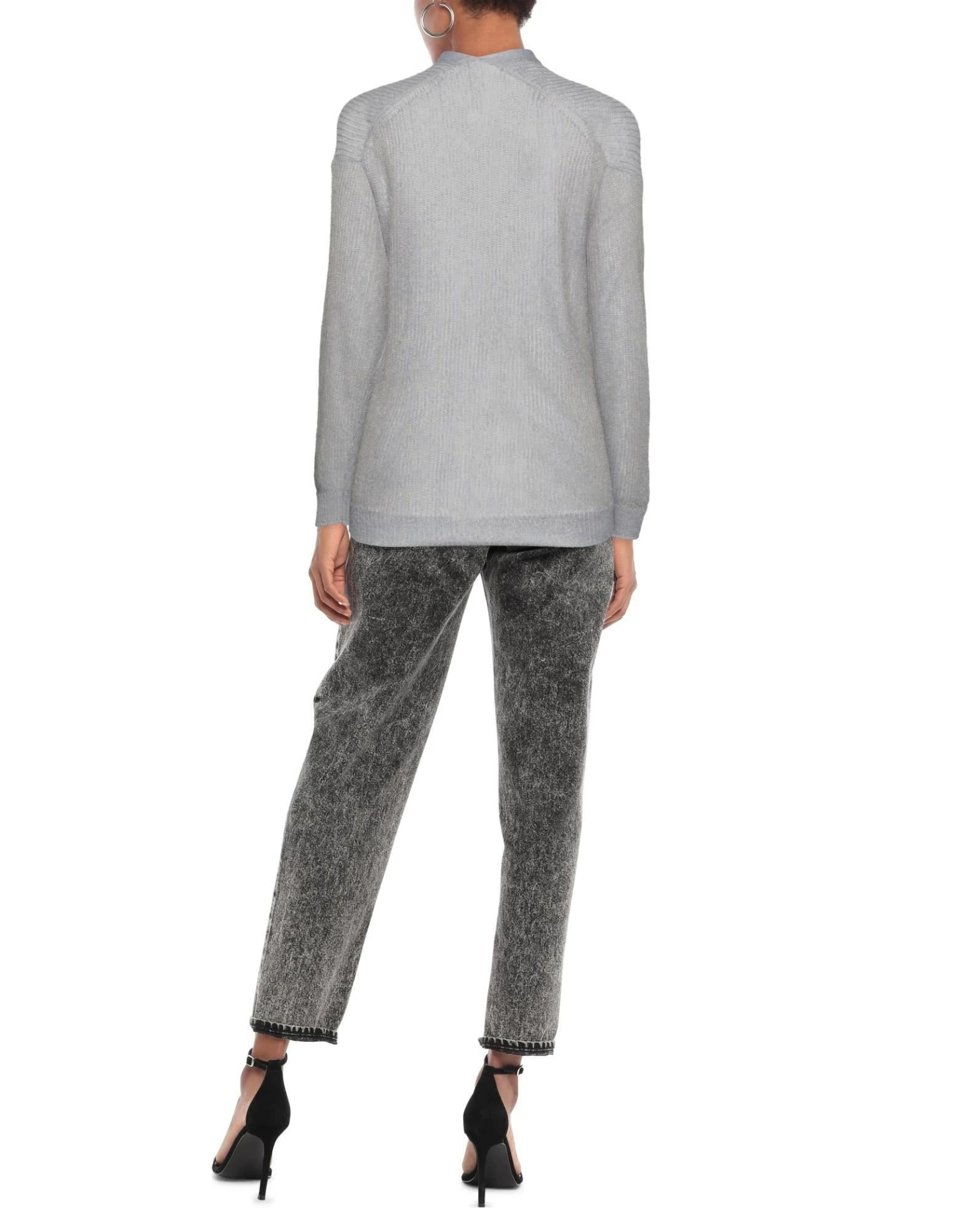 knitted, lamé, no appliqués, two-tone, v-neck, long sleeves, snap buttons fastening, no pockets, lightweight knit