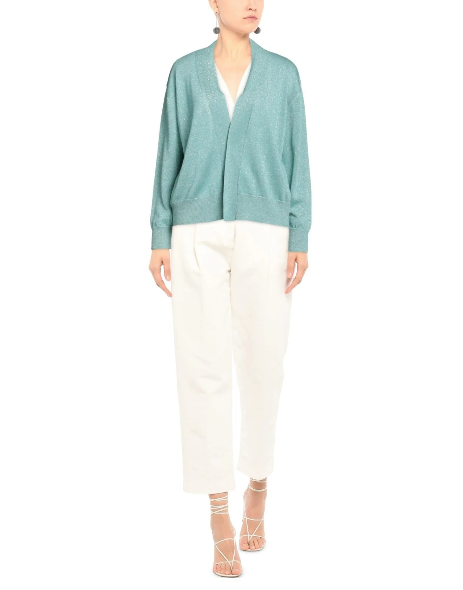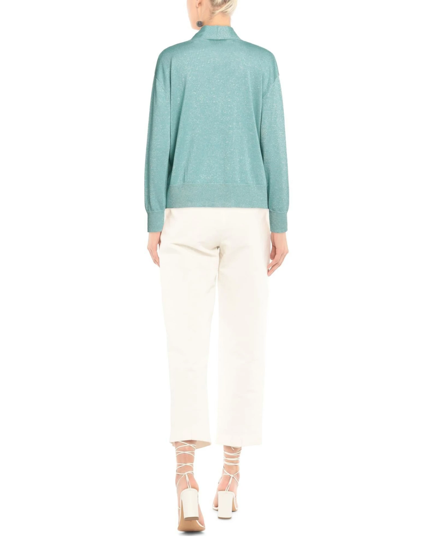 knitted, lamé, solid color, deep neckline, long sleeves, no pockets, no appliqués, lightweight knit