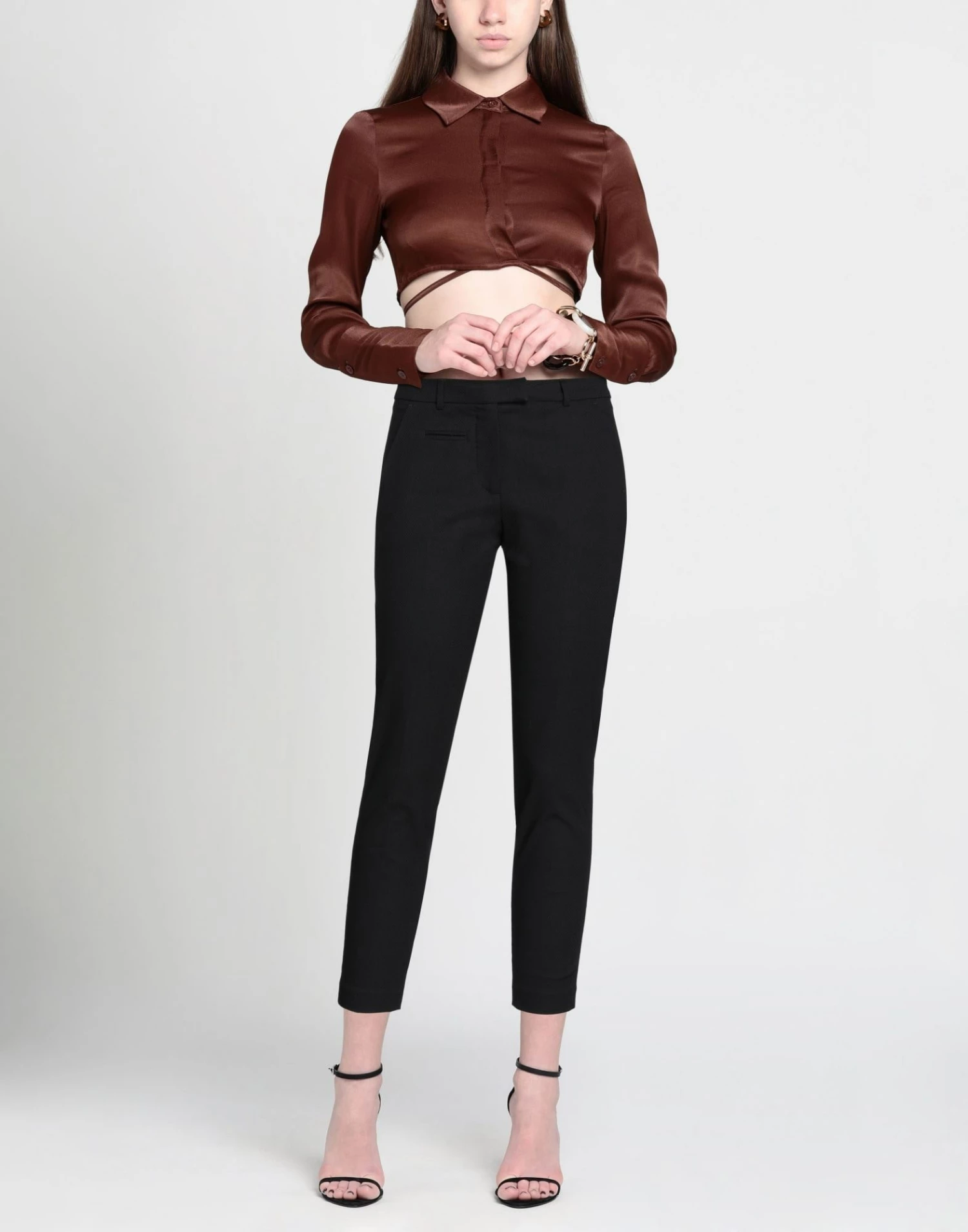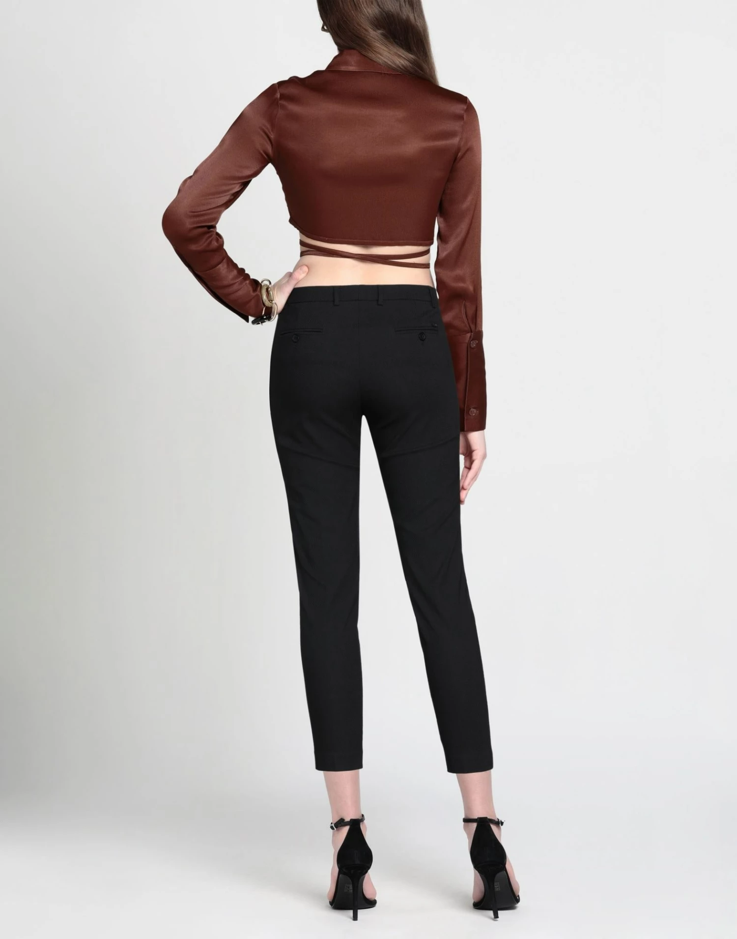 jacquard, plain weave, no appliqués, solid color, mid rise, belt loops, tapered leg, regular fit, hook-and-eye closure, zipper closure, multipockets, stretch, tailored