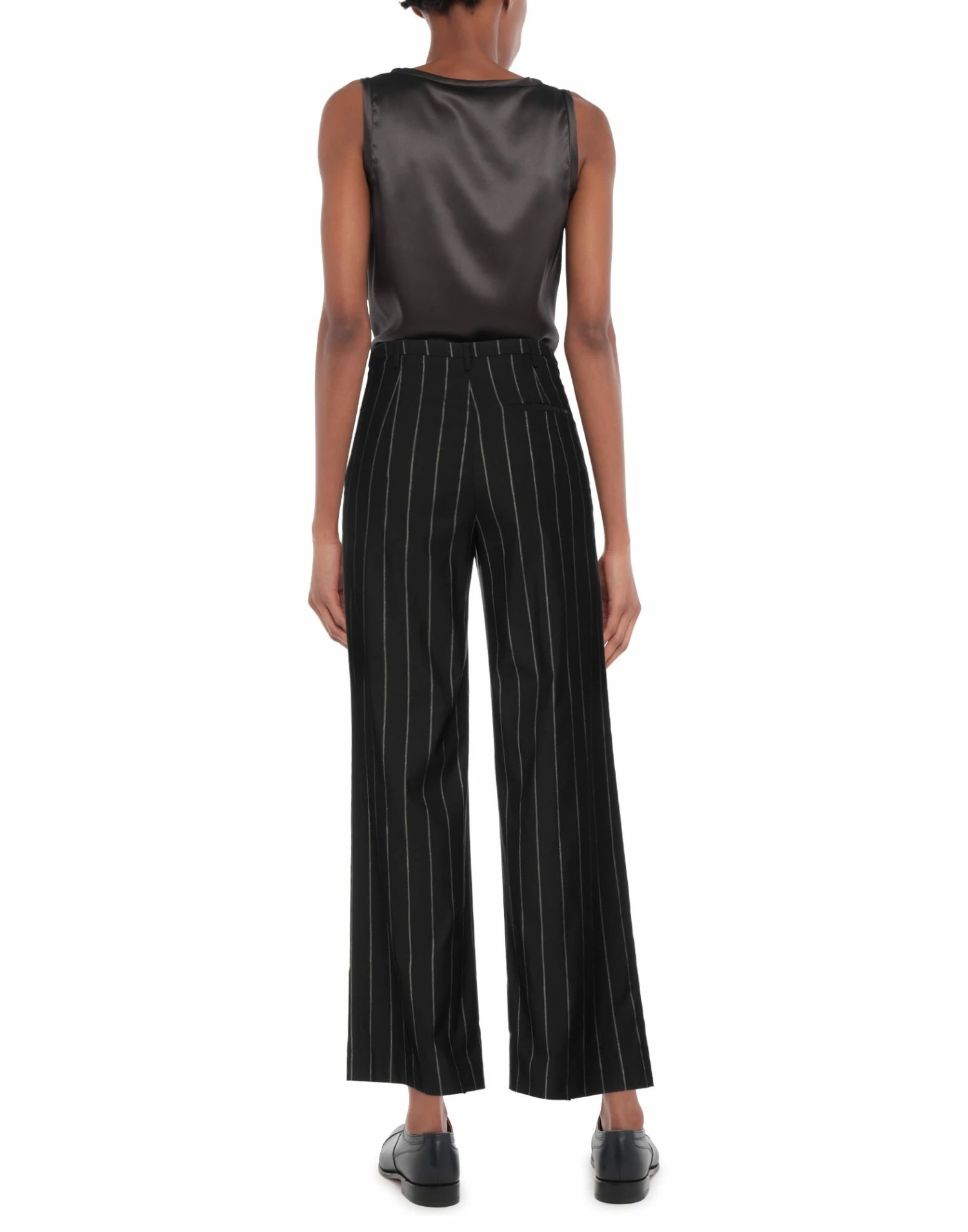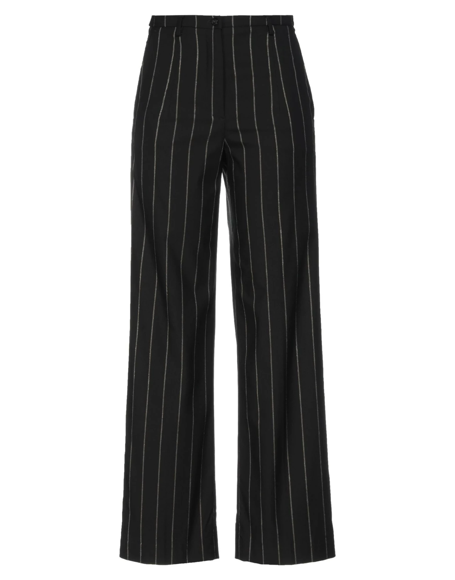 jersey, lamé, pinstriped, brand logo, high waisted, regular fit, straight leg, button, zip, three pockets, stretch
