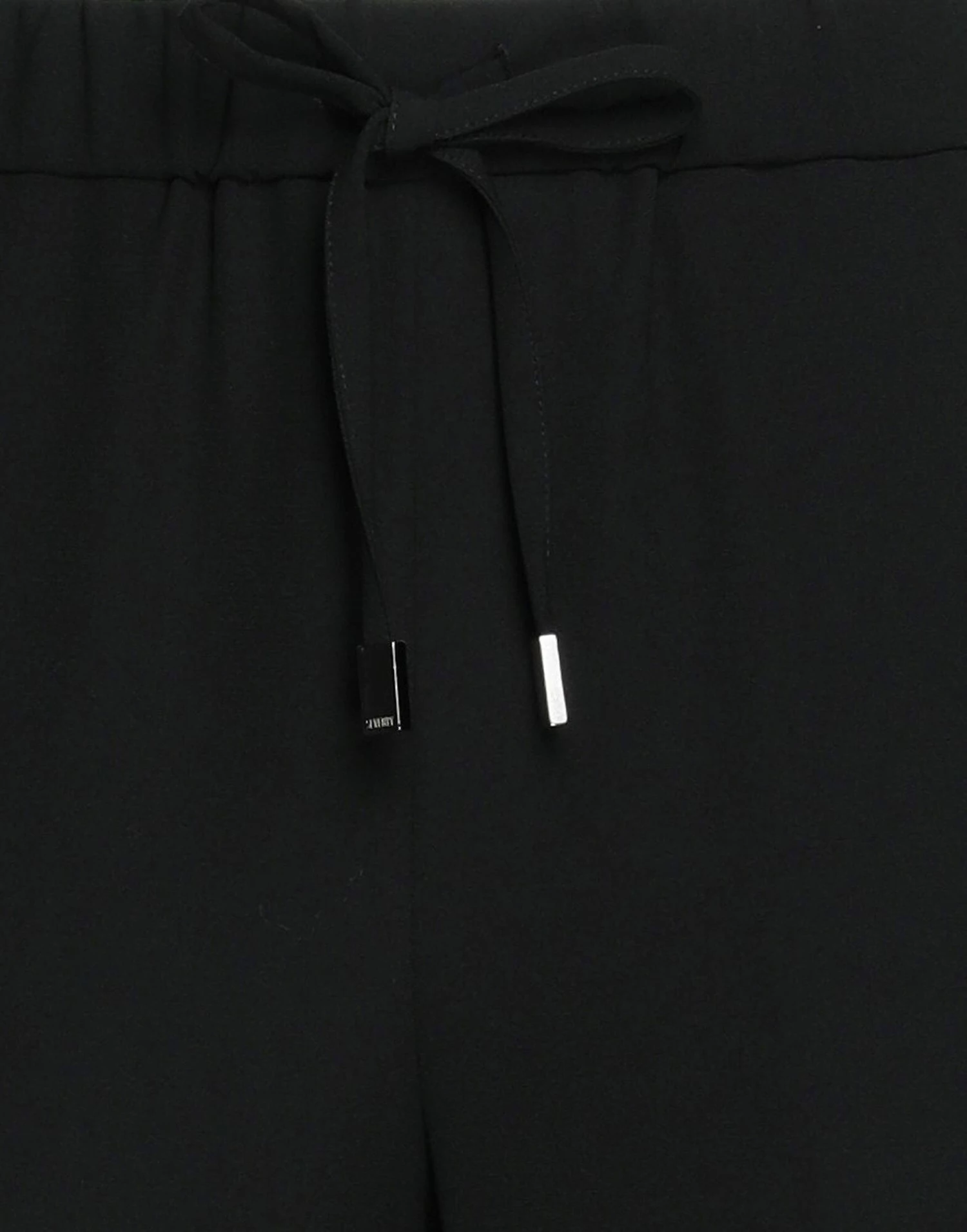 crepe, no appliqués, solid color, high waisted, elasticized waist, tapered leg, regular fit, drawstring closure, multipockets, stretch