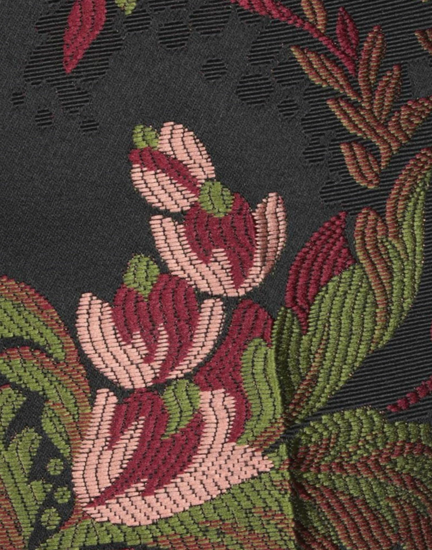jacquard, plain weave, no appliqués, floral design, mid rise, regular fit, flare & wide-leg, hook-and-bar, zip, multipockets