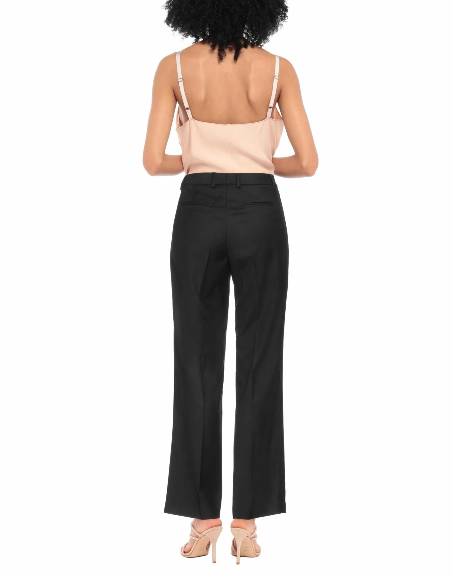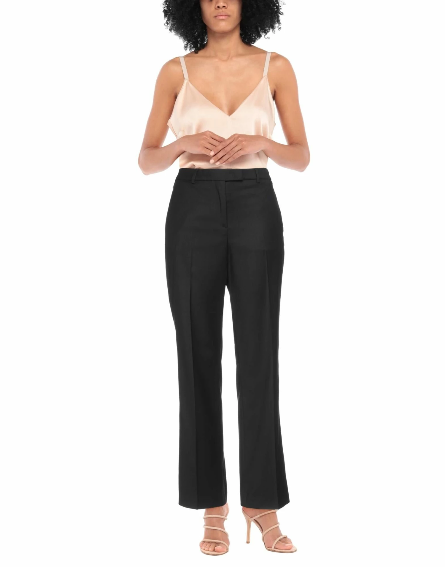 plain weave, solid color, no appliqués, high waisted, regular fit, straight leg, hook-and-bar, zip, multipockets, stretch