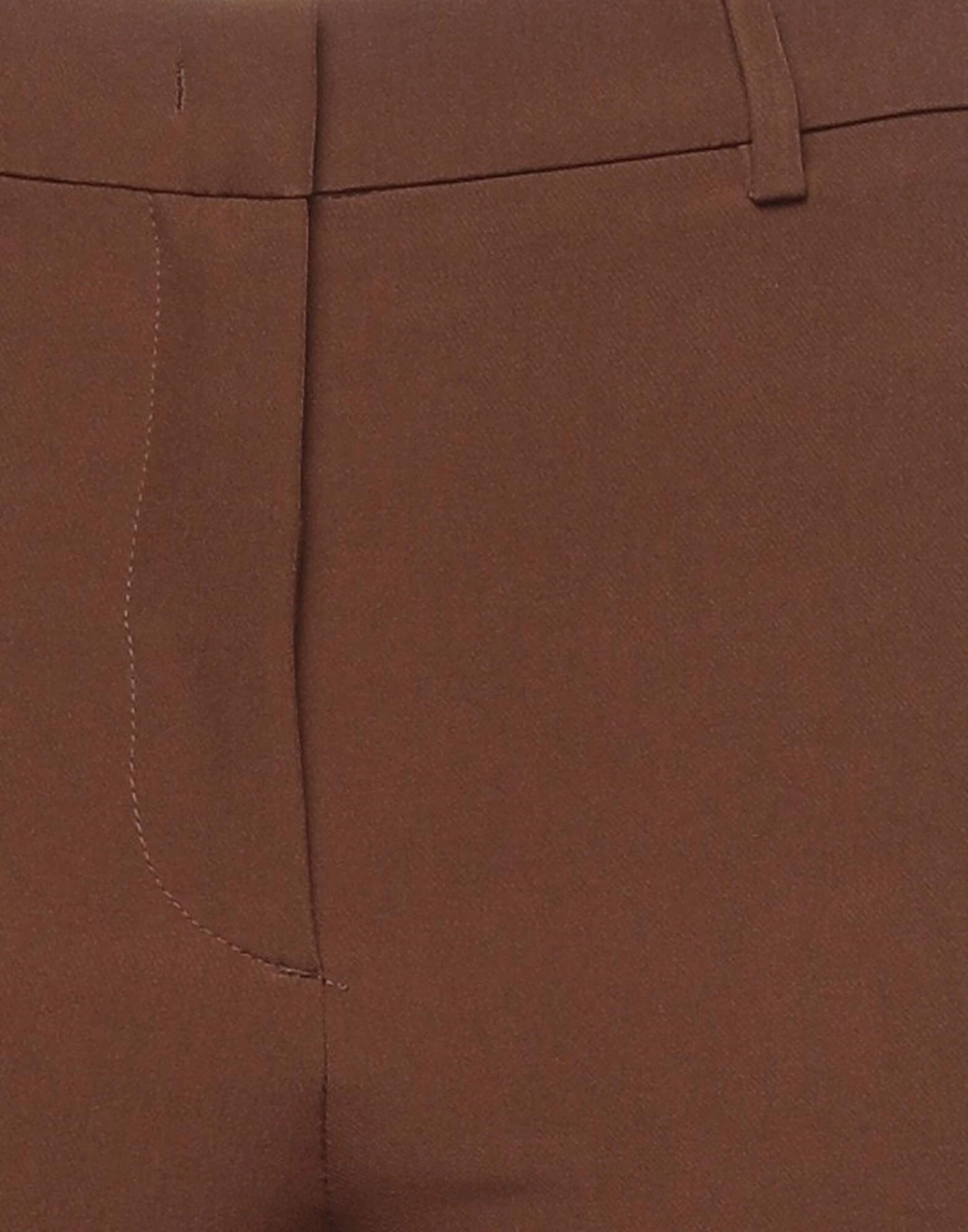 crepe, no appliqués, solid color, mid rise, belt loops, flared cut, slim-leg pants, hook-and-eye closure, zipper closure, multipockets, stretch