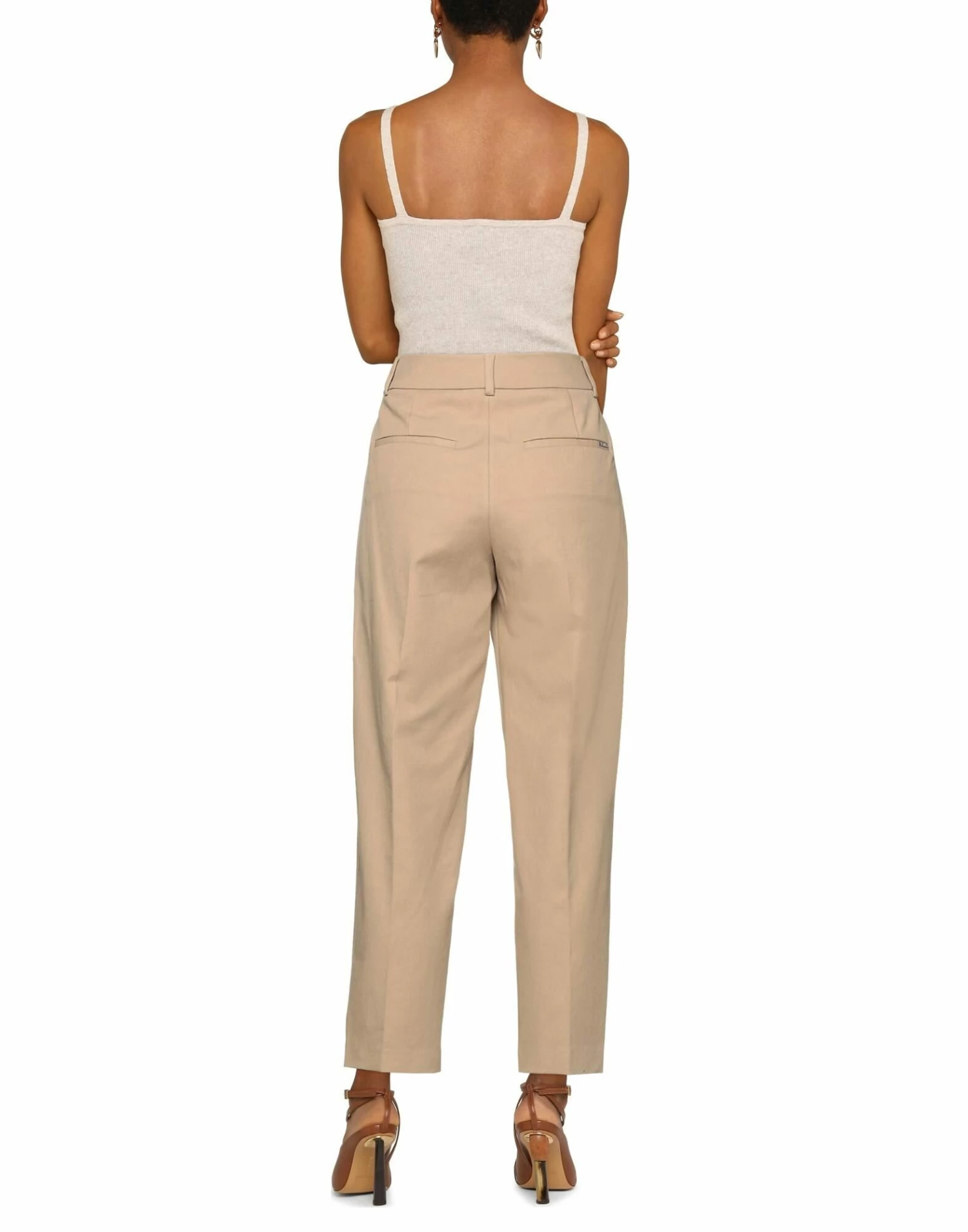 velvet, twill, brand logo, two-tone, high waisted, tapered leg, regular fit, zipper closure, hook-and-eye closure, multipockets, stretch
