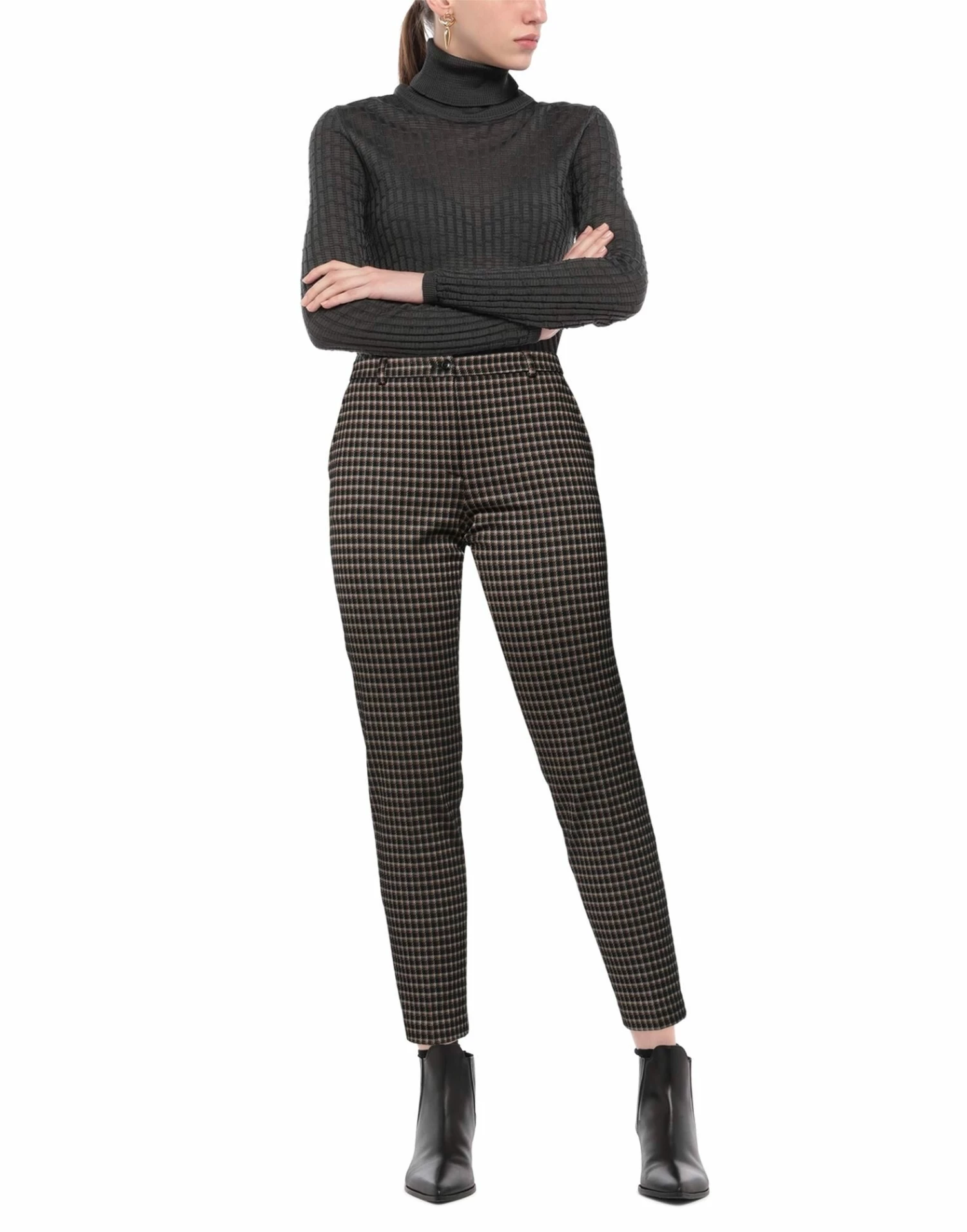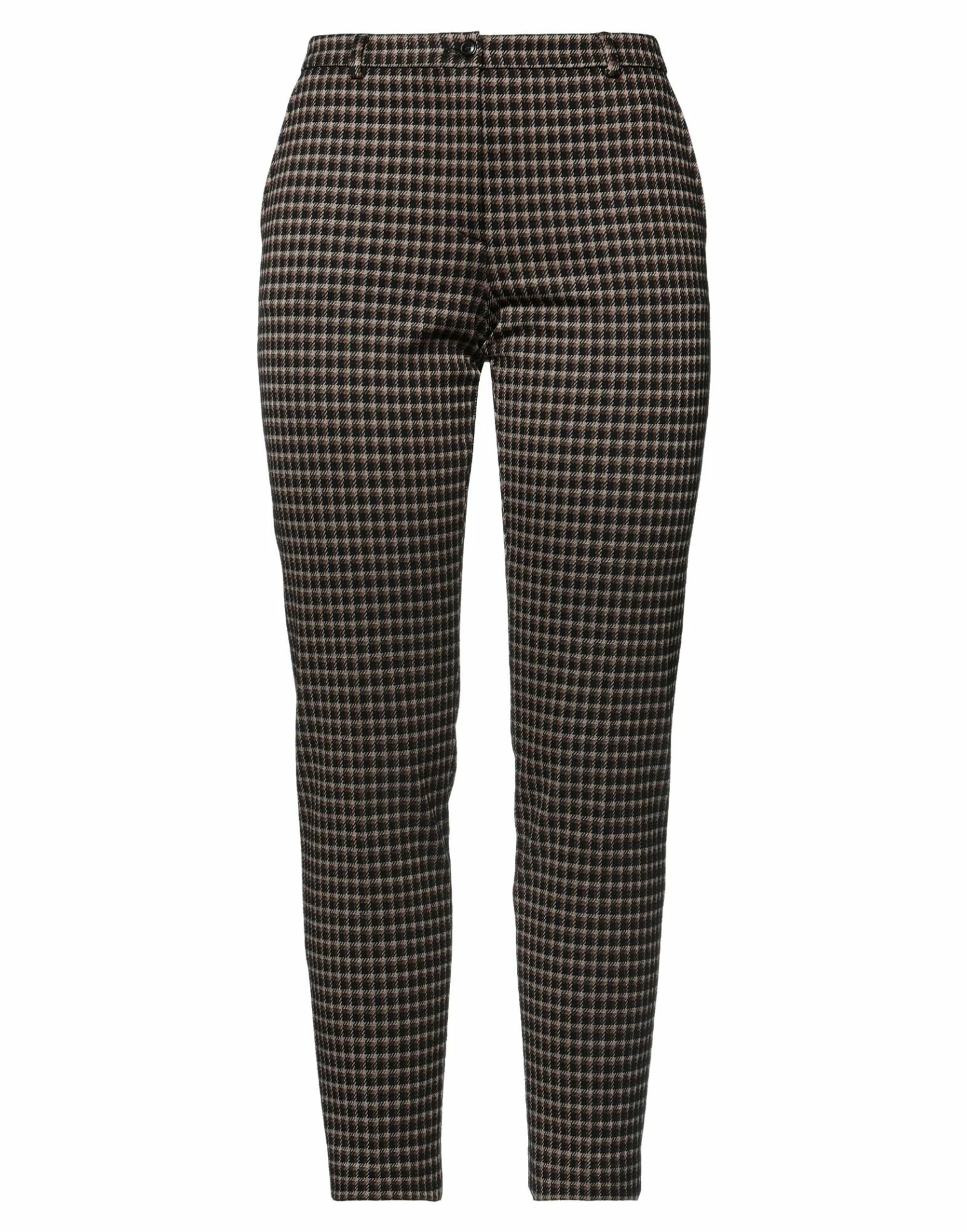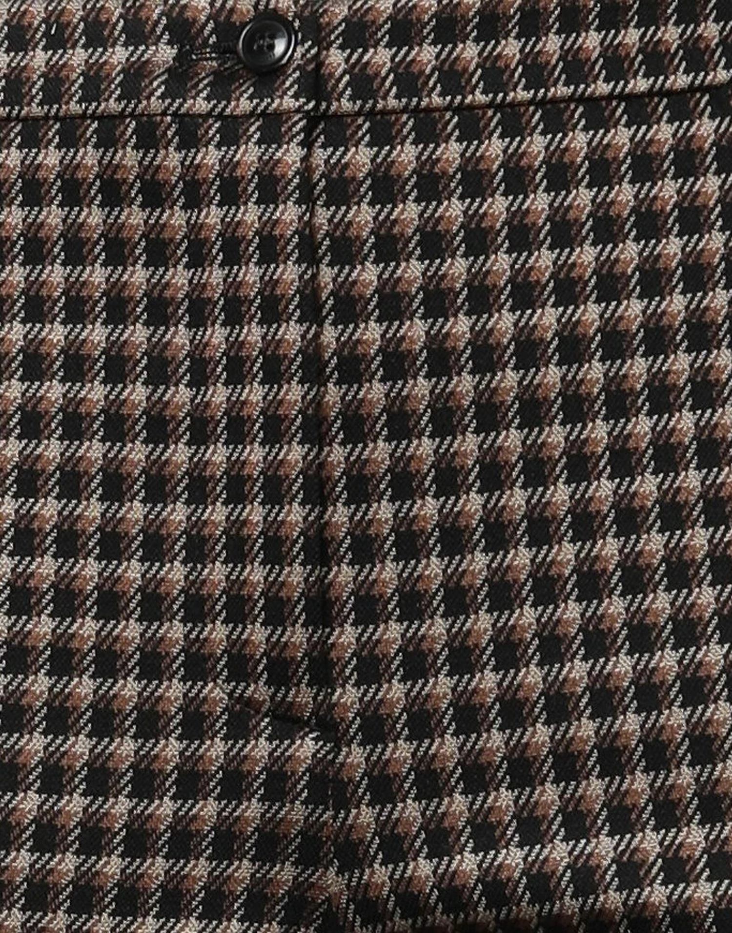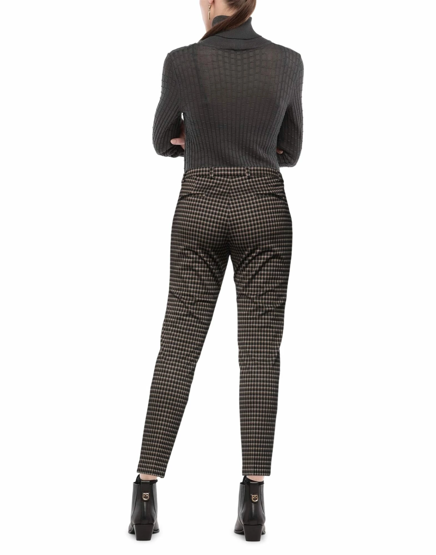 jersey, no appliqués, houndstooth, high waisted, belt loops, regular fit, zipper closure, 1 button, multipockets, stretch, tapered leg