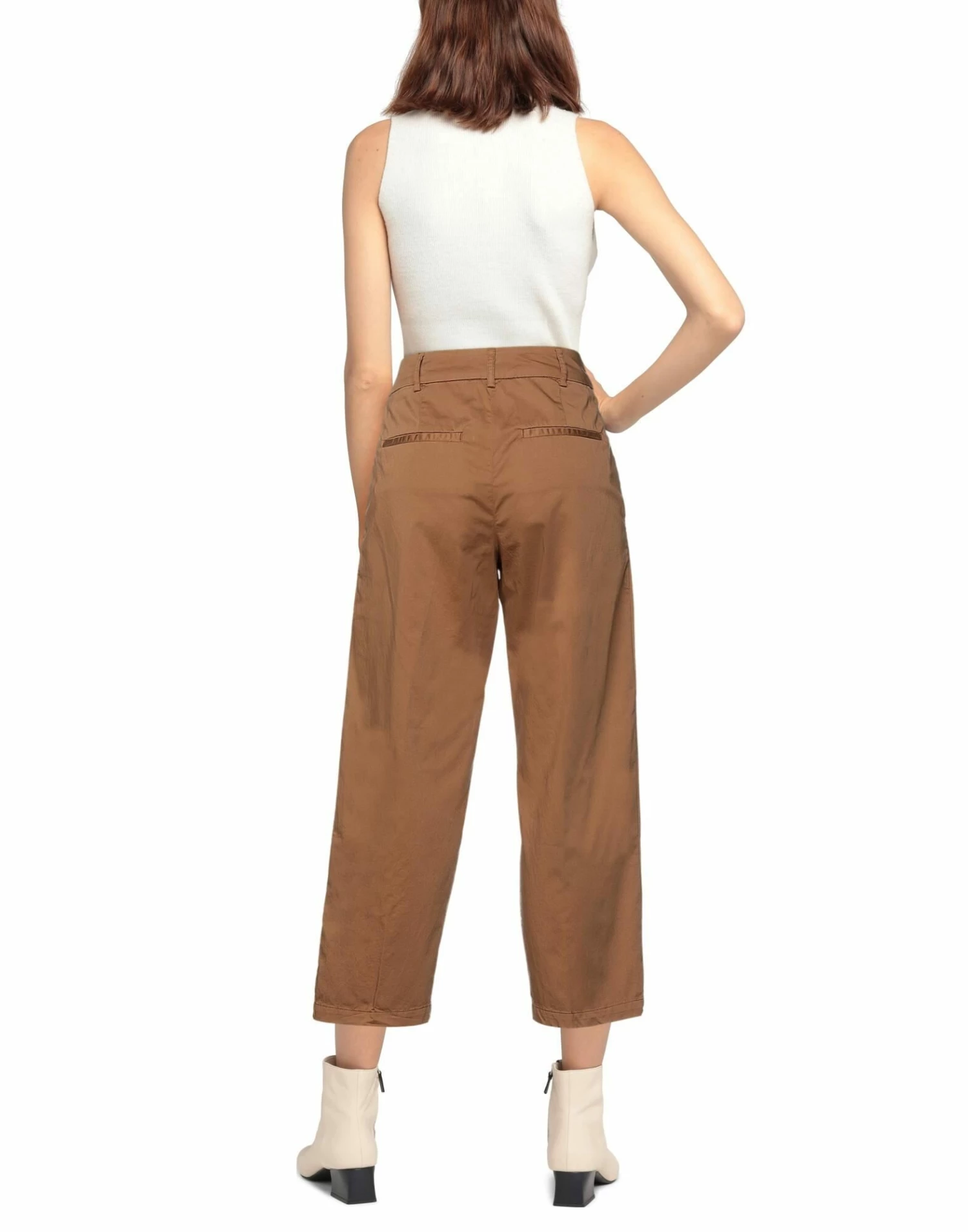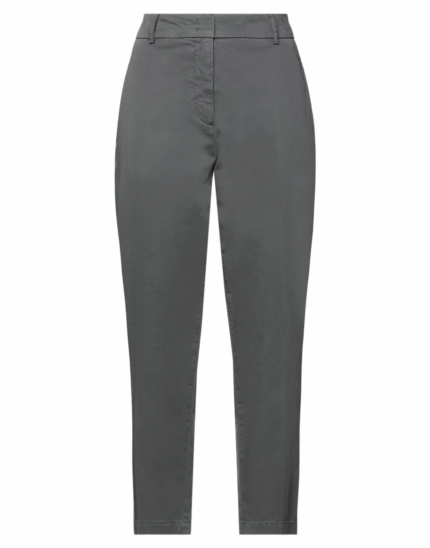 plain weave, no appliqués, solid color, high waisted, belt loops, tapered leg, regular fit, hook-and-eye closure, zipper closure, multipockets, stretch