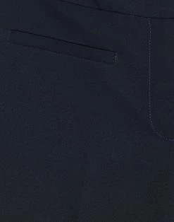 plain weave, brand logo, mid rise, solid color, regular fit, tapered leg, hook-and-eye closure, zipper closure, multipockets, stretch