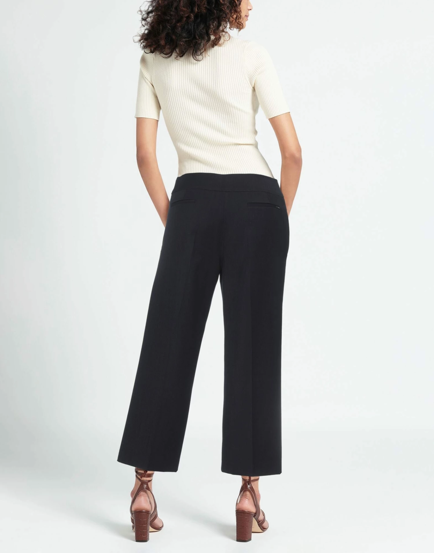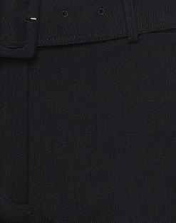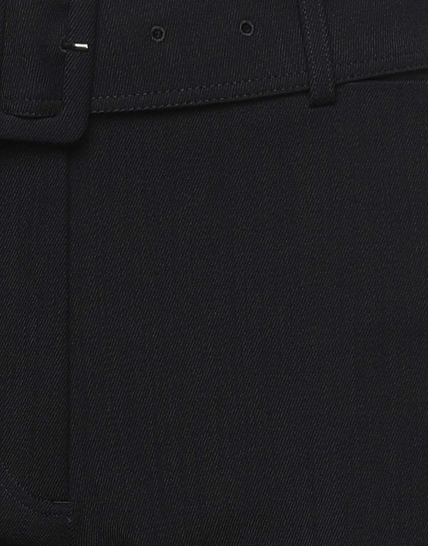 twill, brand logo, buckle, solid color, high waisted, straight leg, regular fit, hook-and-eye closure, zipper closure, multipockets, stretch