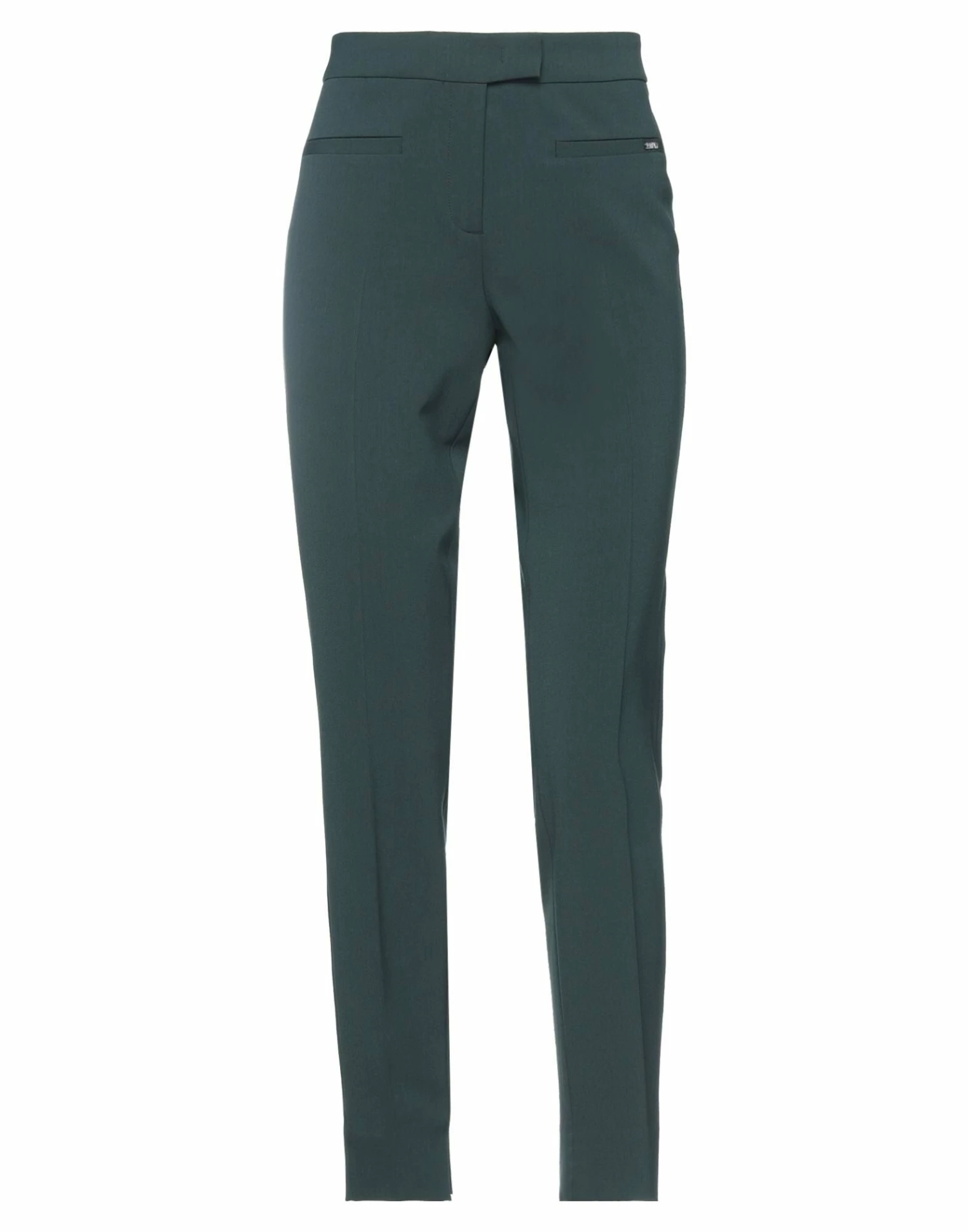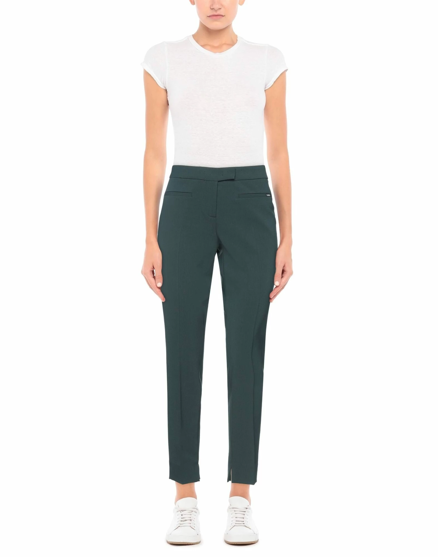 twill, brand logo, solid color, mid rise, tapered leg, slim-leg pants, zipper closure, hook-and-eye closure, multipockets, stretch