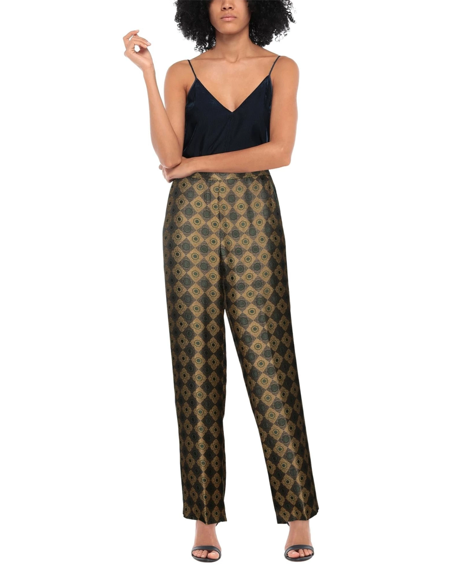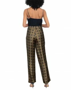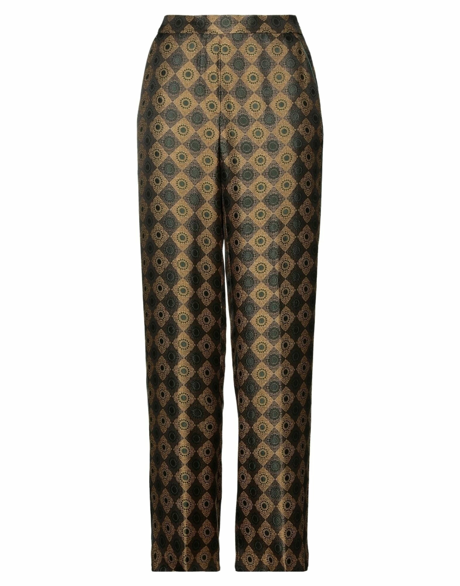 jacquard, satin, no appliqués, geometric design, mid rise, straight leg, regular fit, zipper closure, multipockets