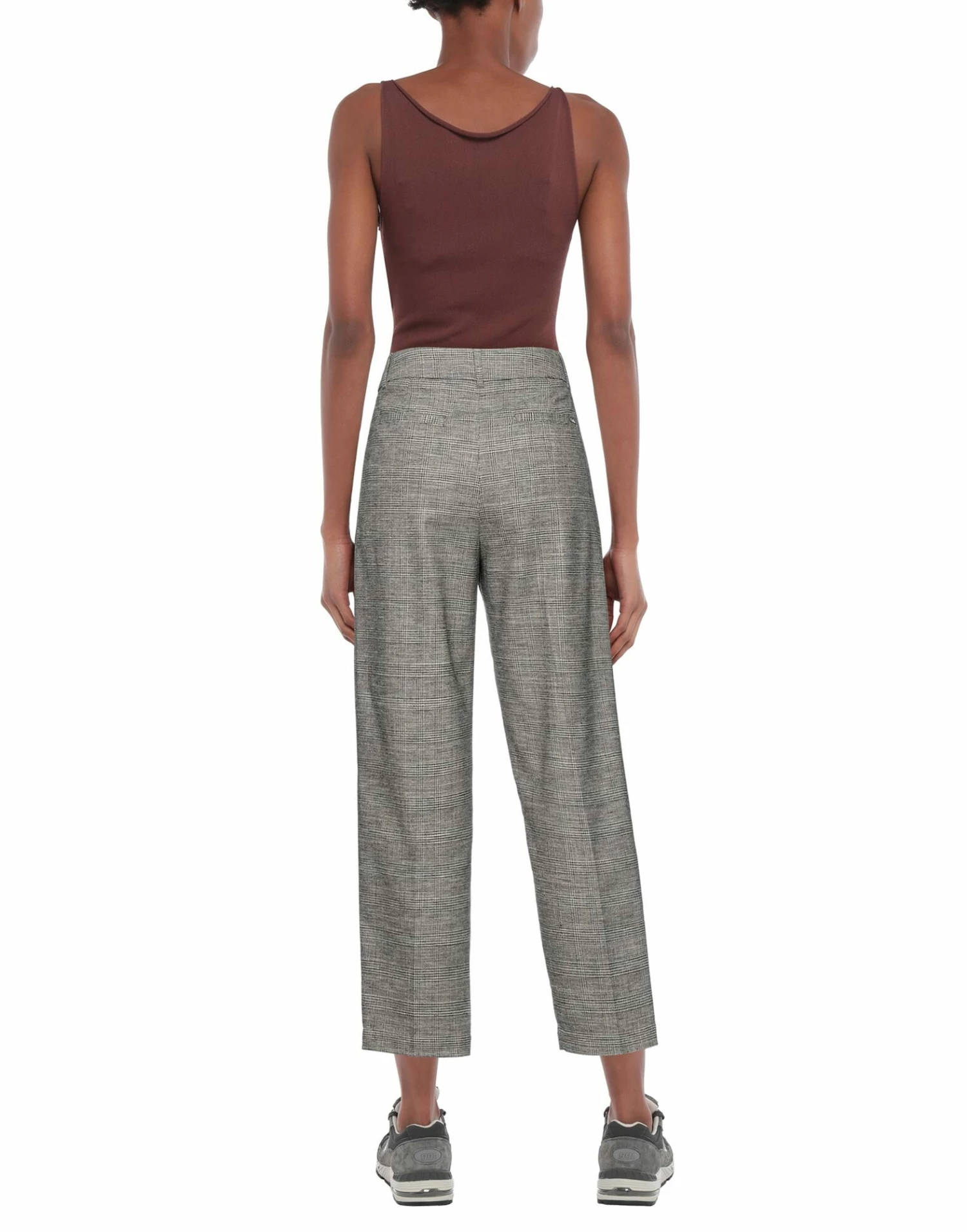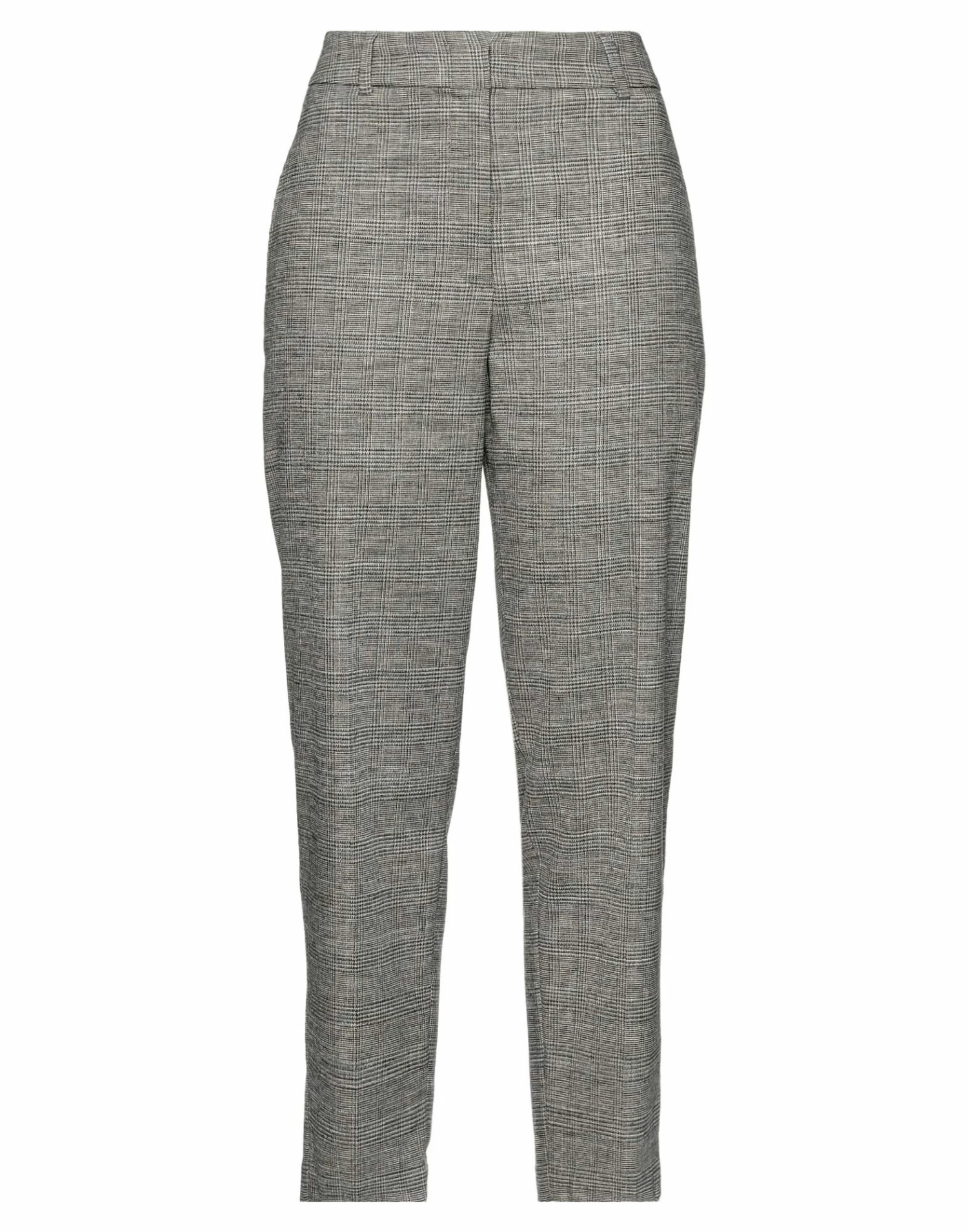 crepe, brand logo, glen plaid, high waisted, belt loops, tapered leg, regular fit, hook-and-eye closure, zipper closure, multipockets