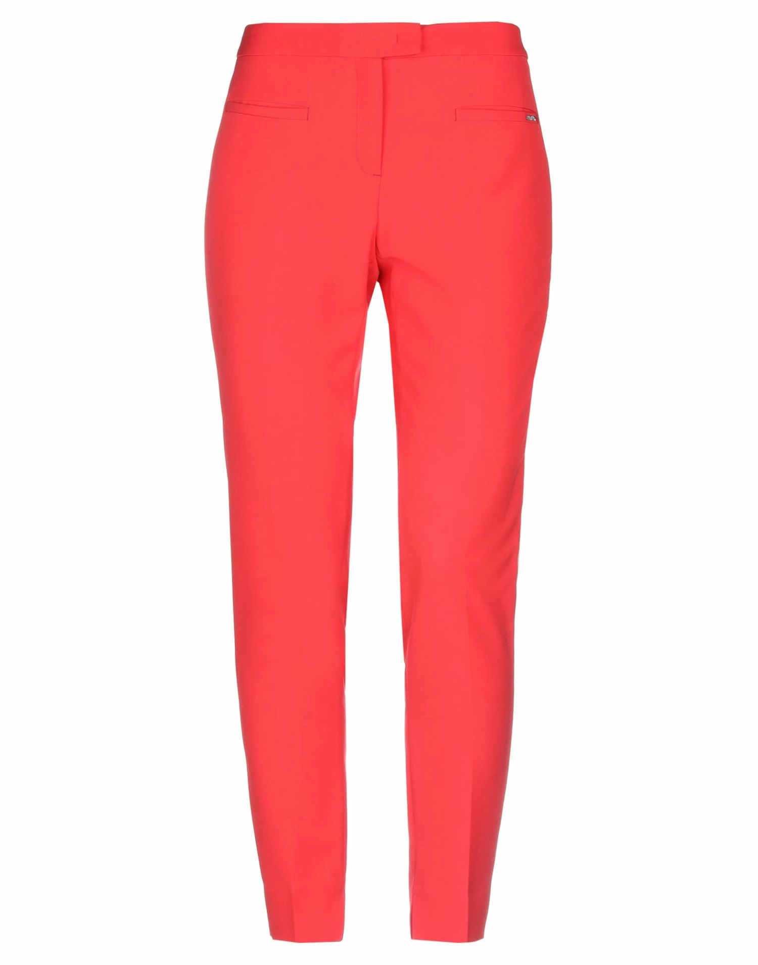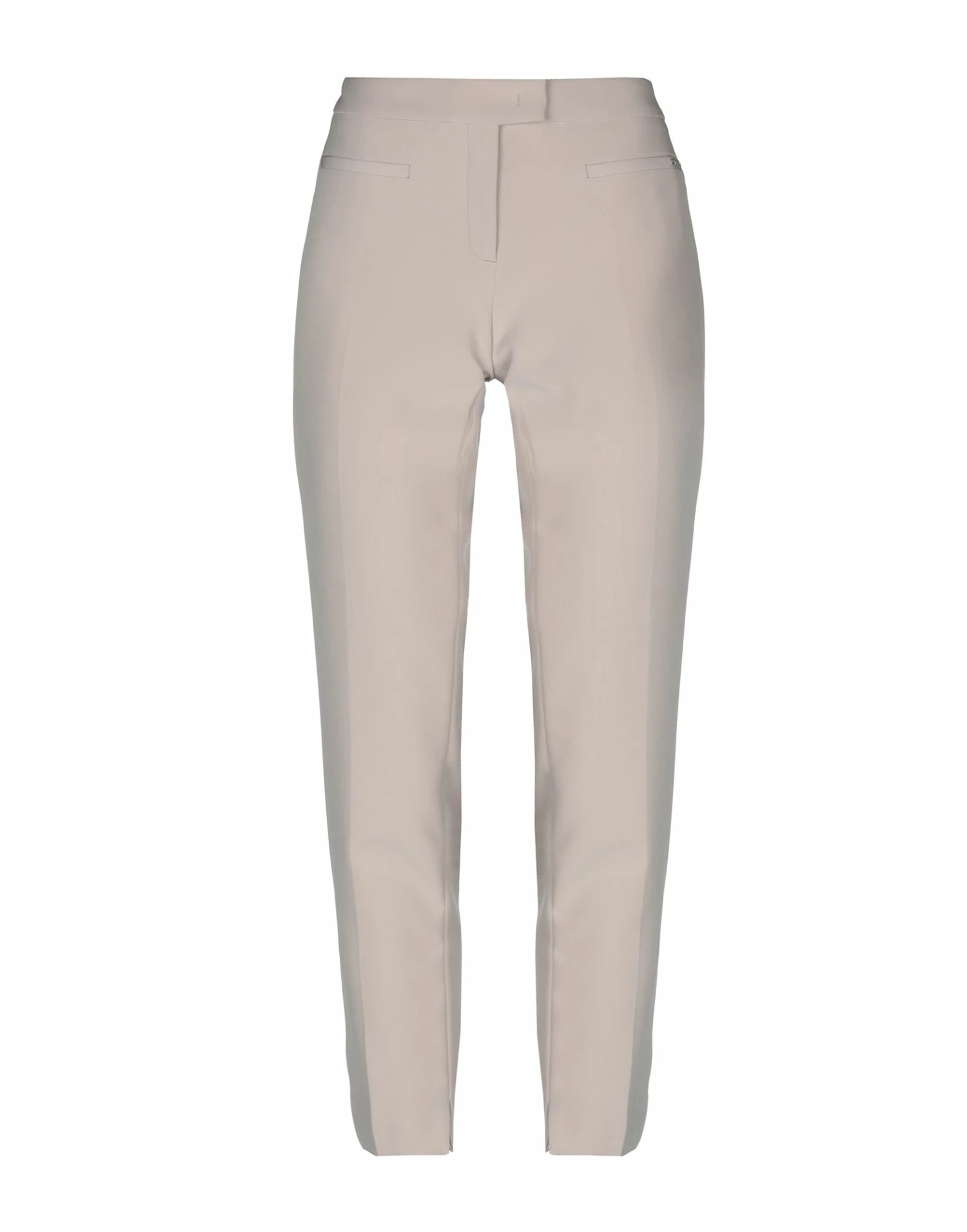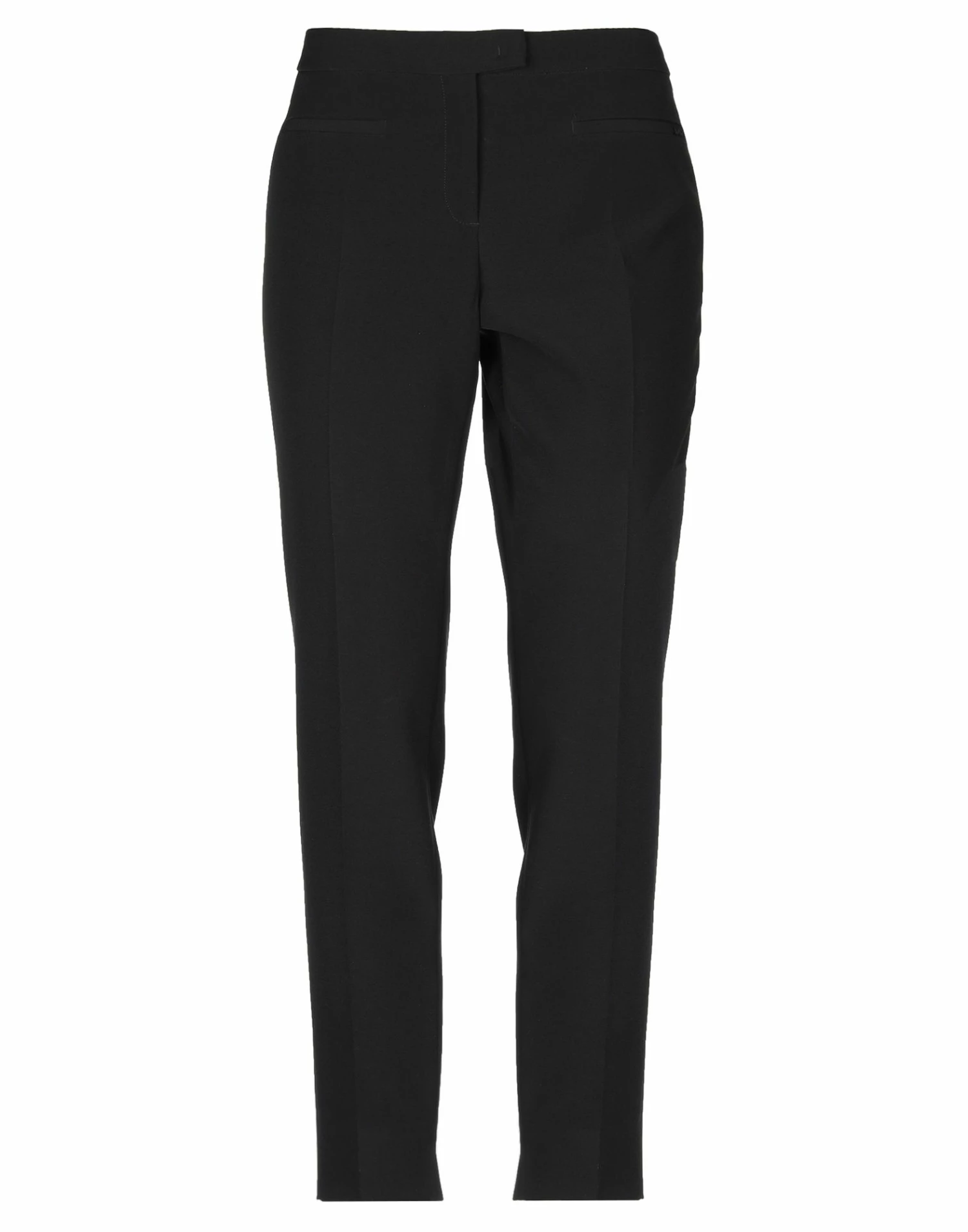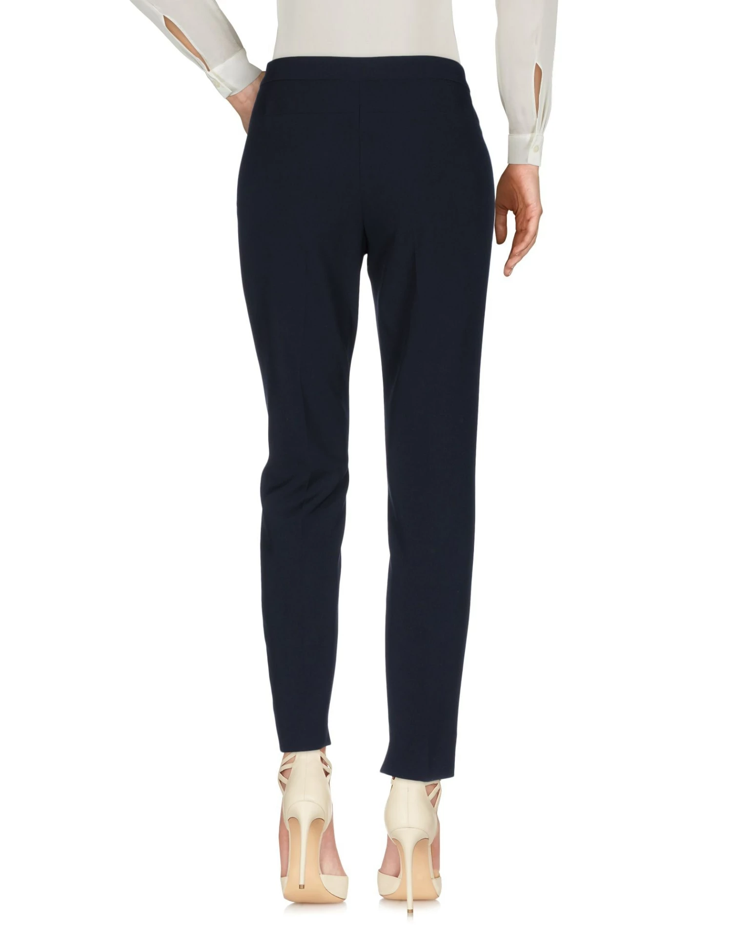 crêpe, logo, basic solid color, mid rise, regular fit, tapered leg, hook-and-bar, zip, multipockets, stretch, tailored
