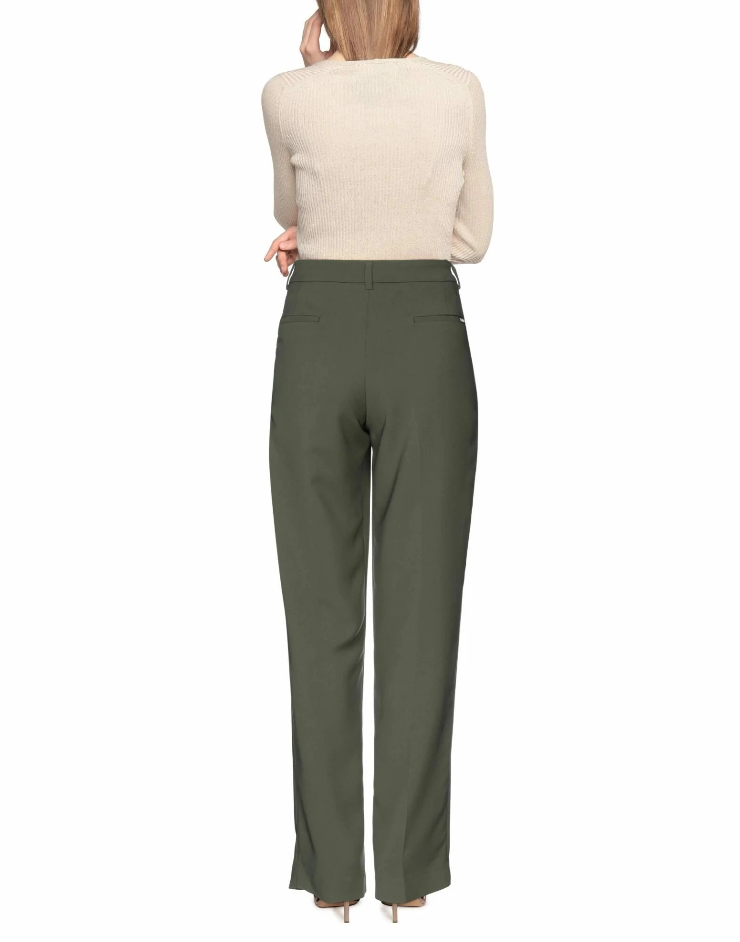 plain weave, solid color, mid rise, regular fit, straight leg, logo, hook-and-bar, zip, multipockets, double dart, tailored