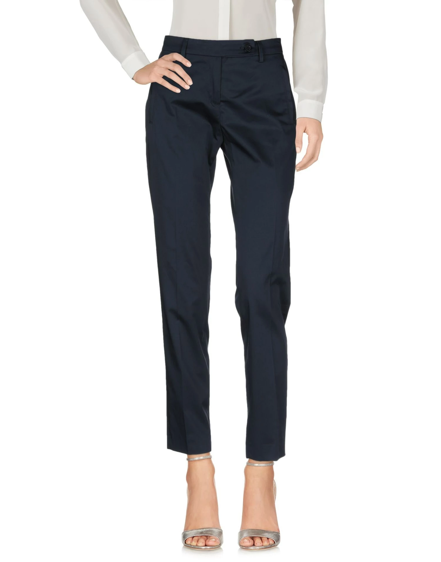 plain weave, no appliqués, mid rise, regular fit, tapered leg, button, zip, four pockets, stretch, solid color, unlined