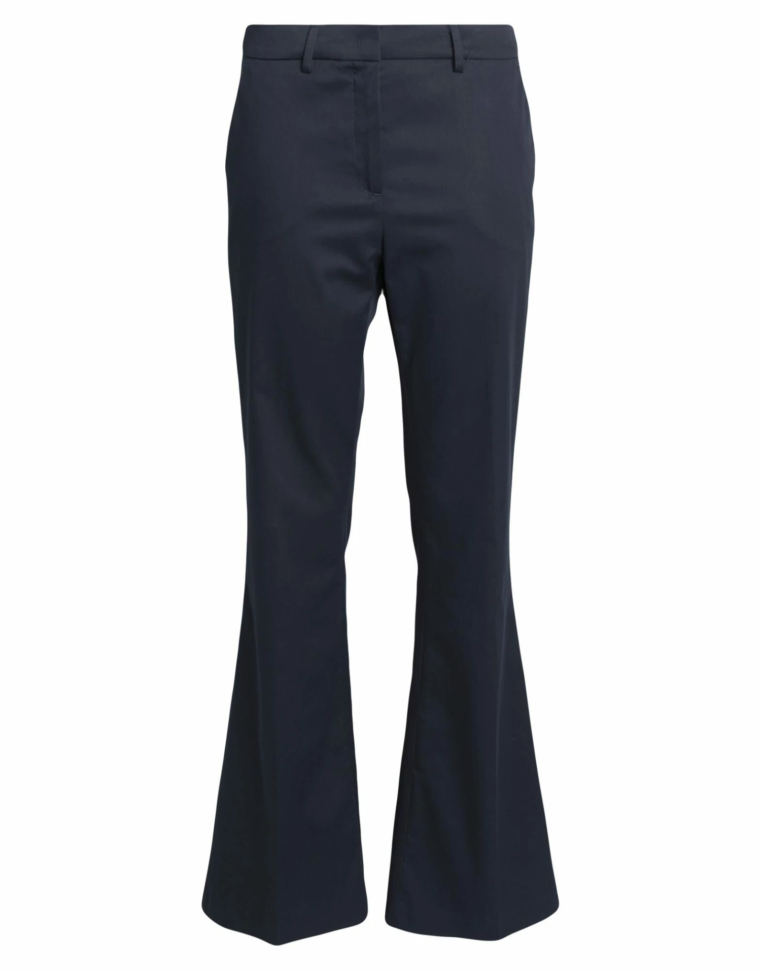 plain weave, solid color, no appliqués, mid rise, regular fit, multipockets, stretch, flared cut, zipper closure