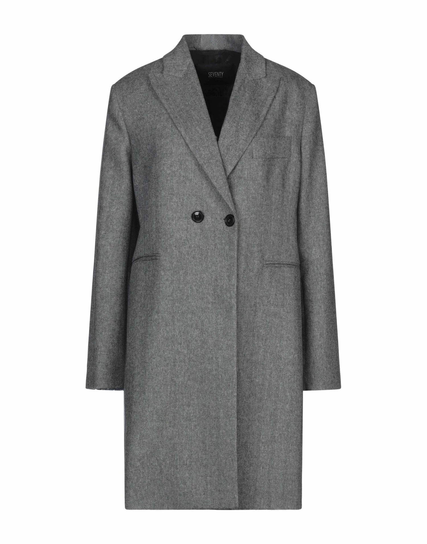 flannel, no appliqués, herringbone, double-breasted, button closing, lapel collar, multipockets, long sleeves, rear slit, fully lined