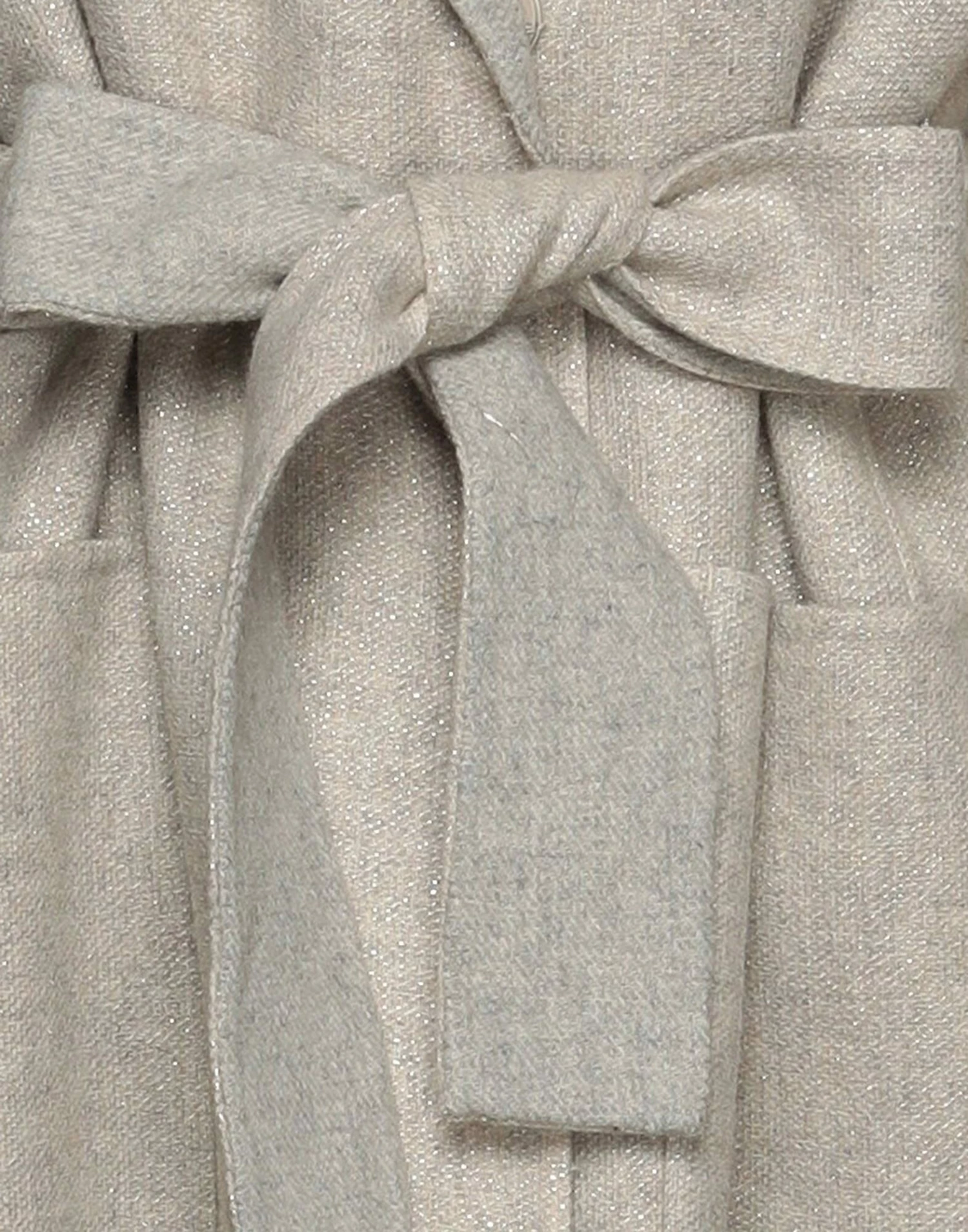 flannel, lamé, sash, two-tone, v-neck, single-breasted , long sleeves, unlined, snap buttons fastening, multipockets