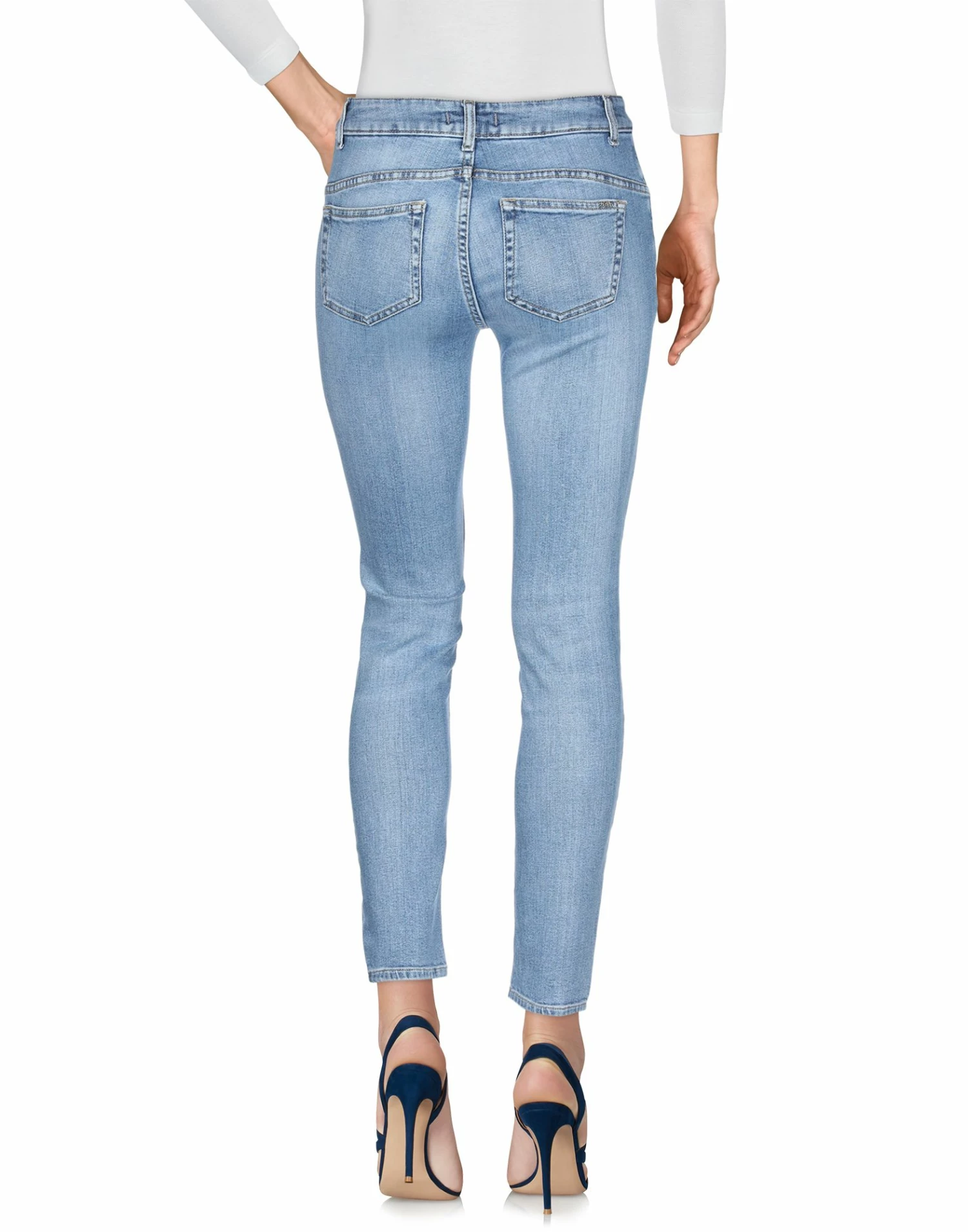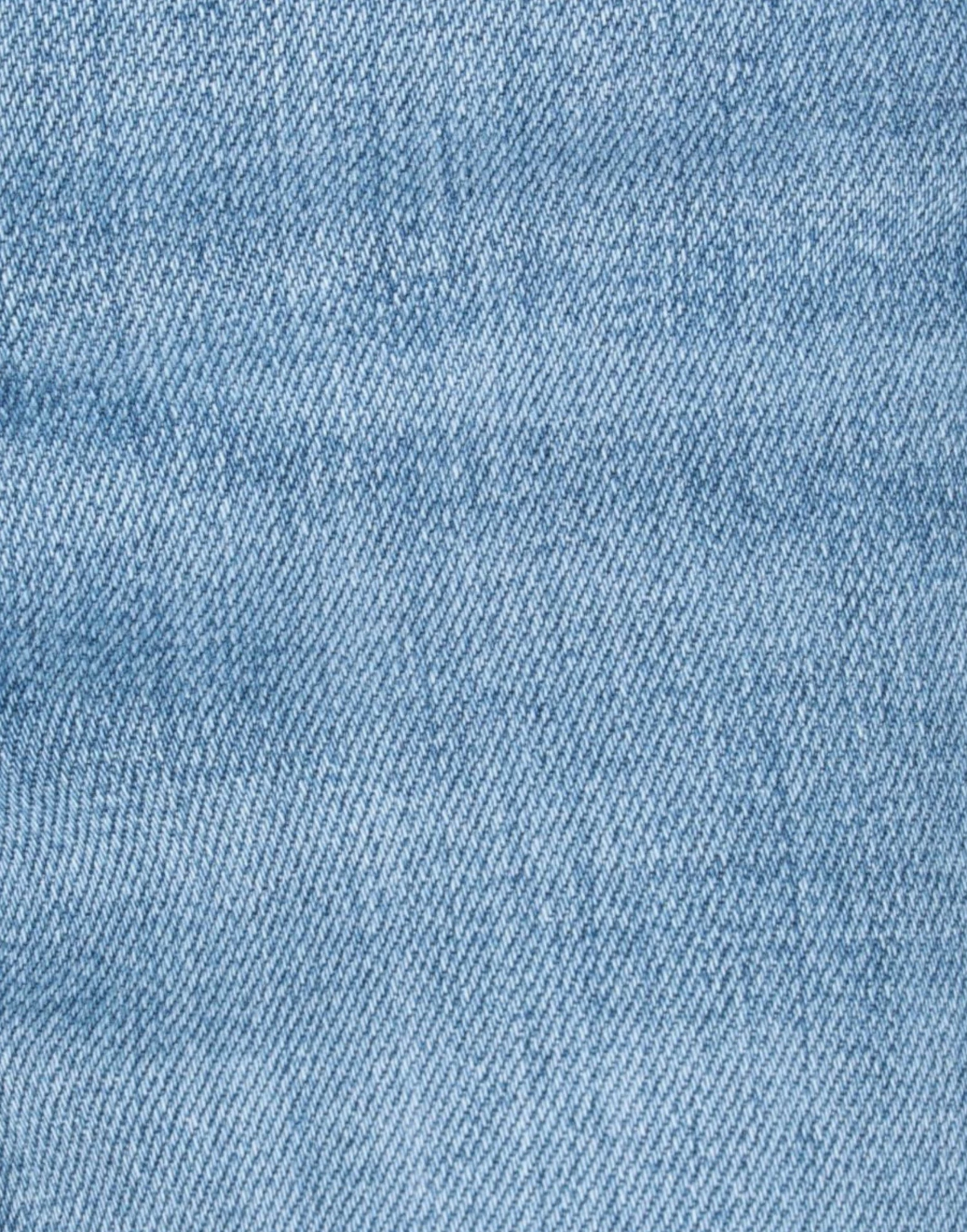 denim, logo, solid color, light wash, high waisted, front closure, button, zip, multipockets, stretch, faded
