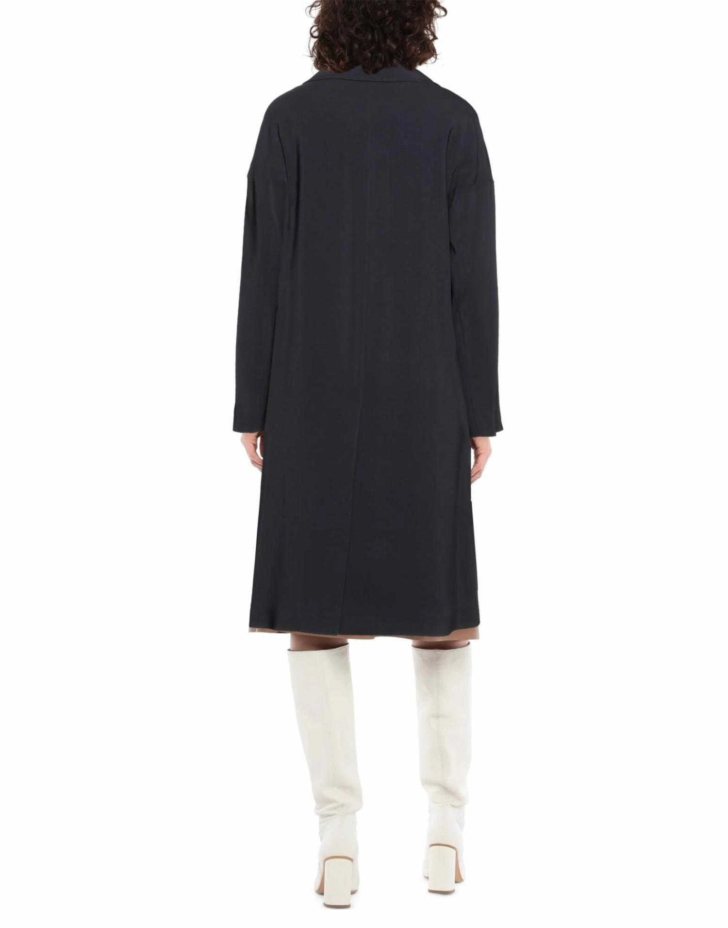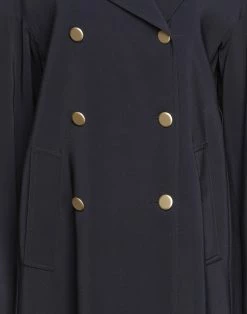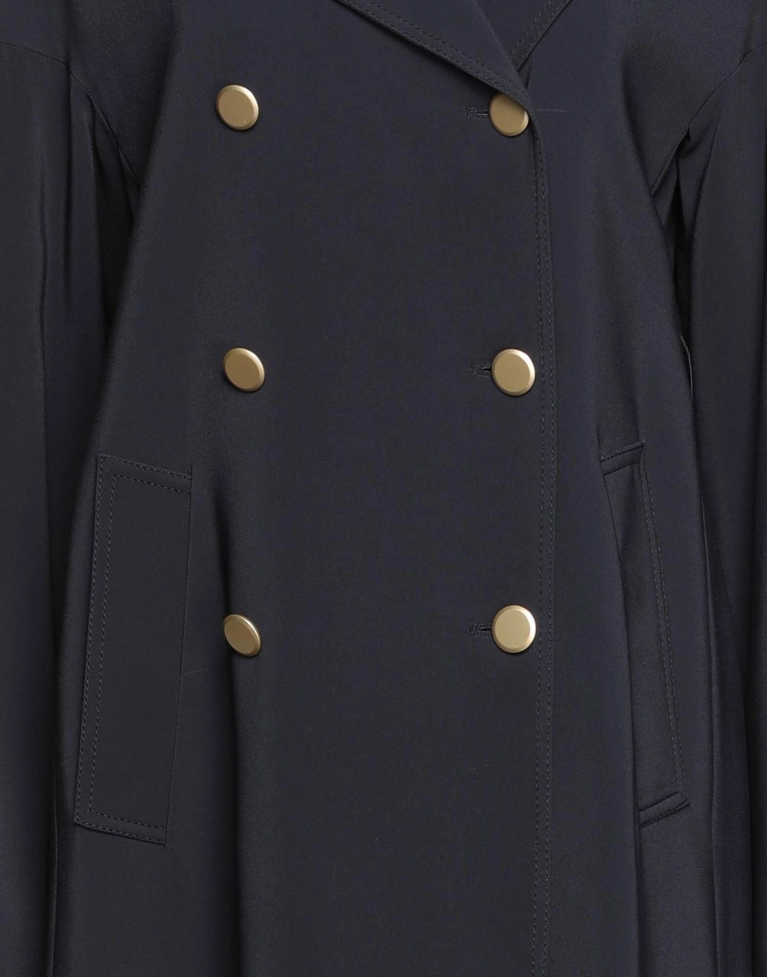 crepe, no appliqués, solid color, lapel collar, double-breasted, long sleeves, fully lined, button closing, multipockets, stretch