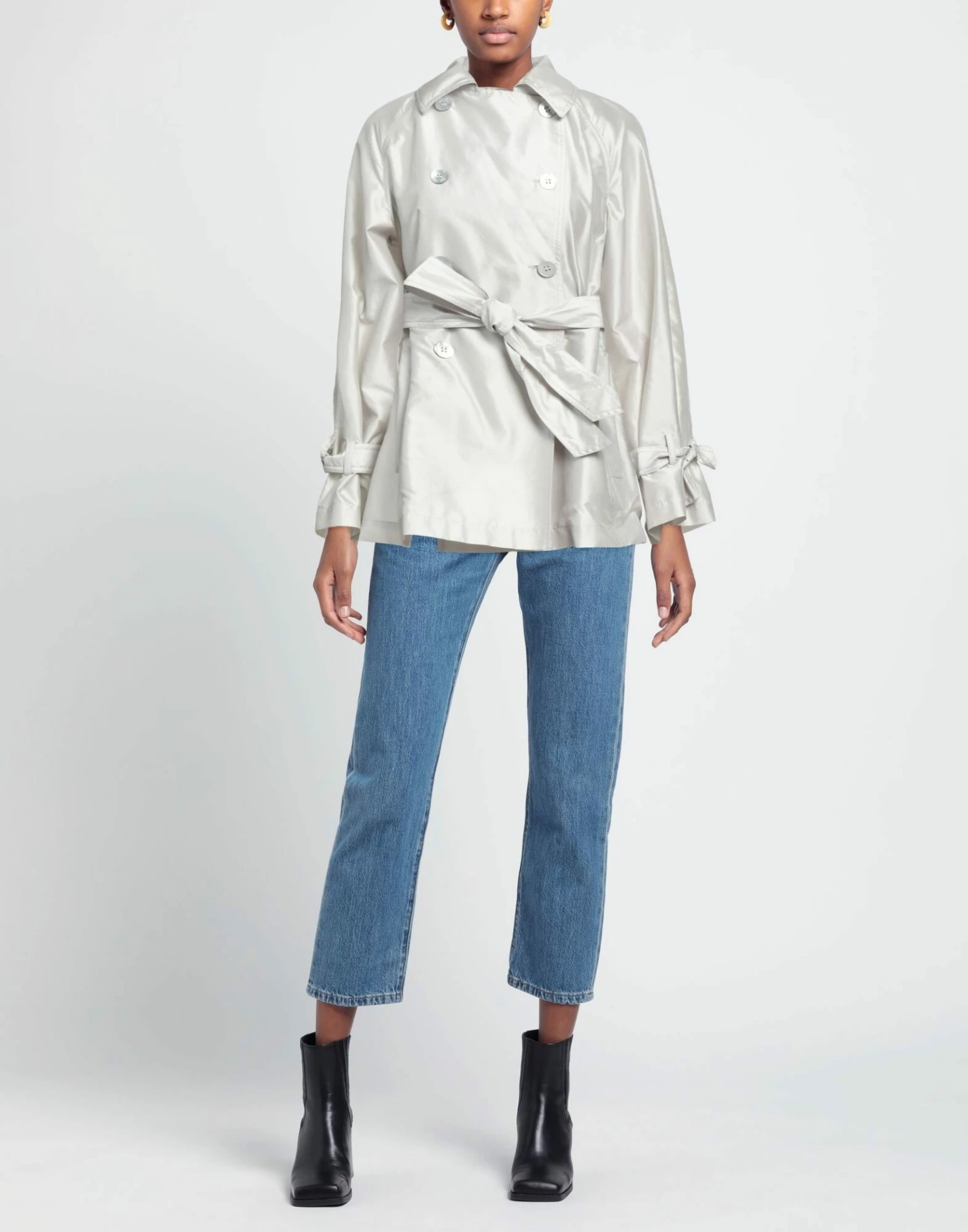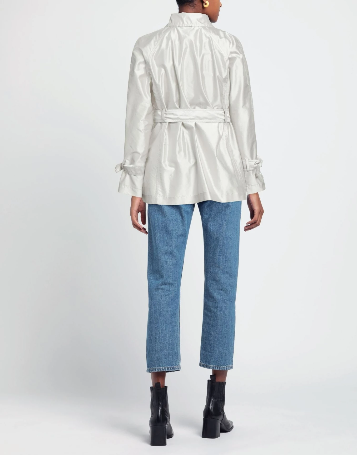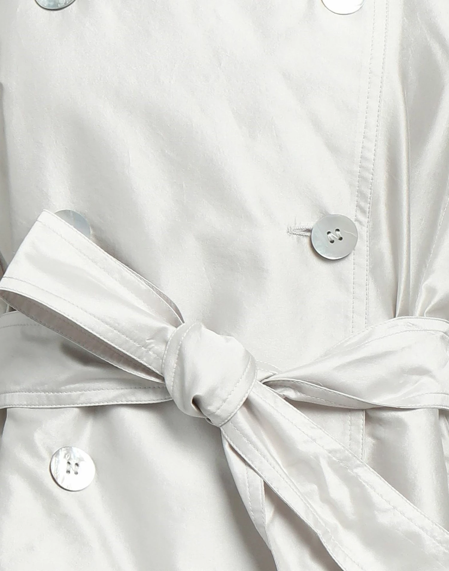 contains non-textile parts of animal origin, taffeta, belt, solid color, lapel collar, double-breasted, long sleeves, unlined, button closing, multipockets, trench
