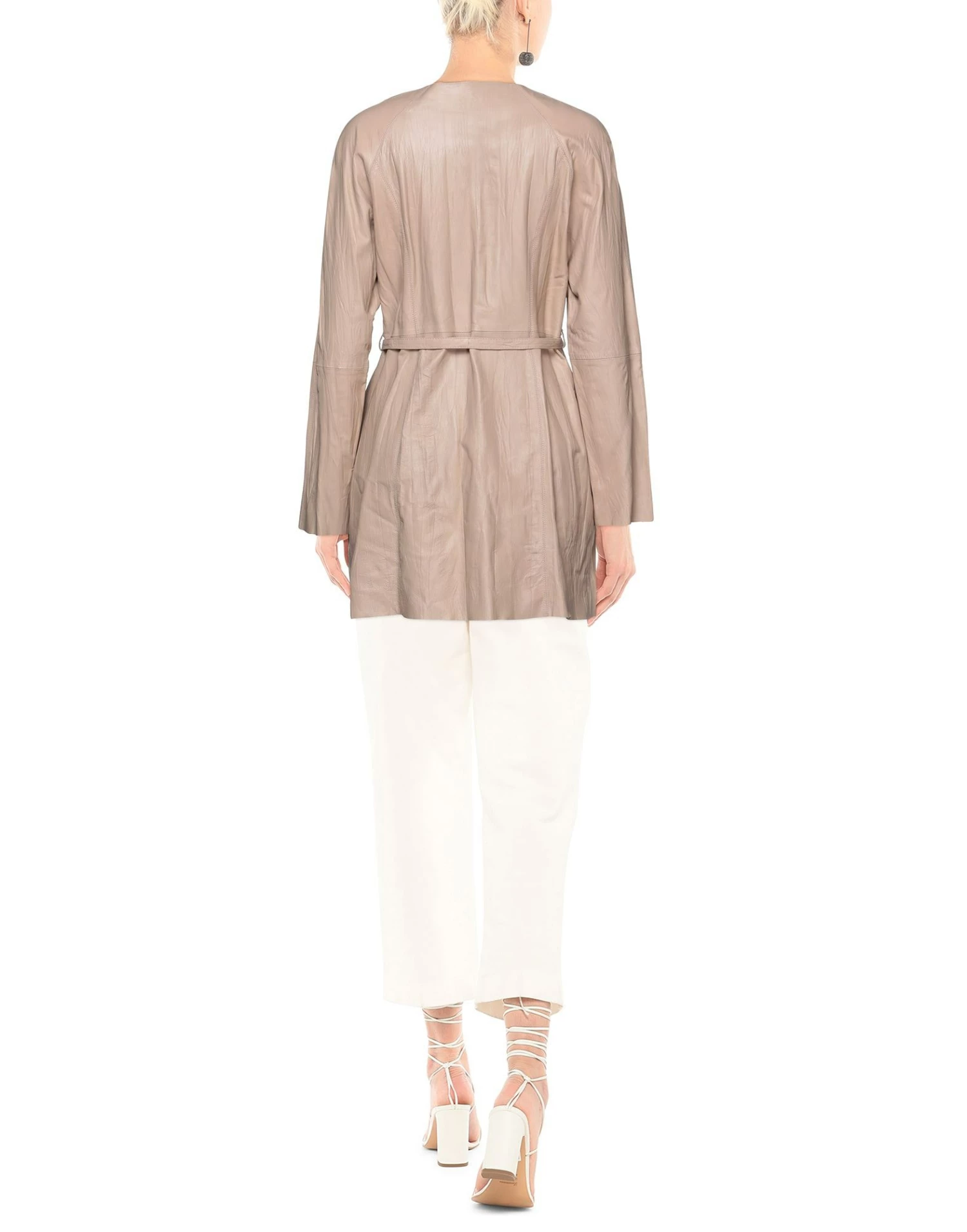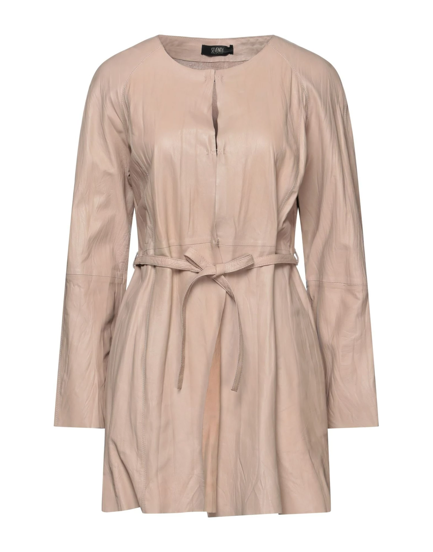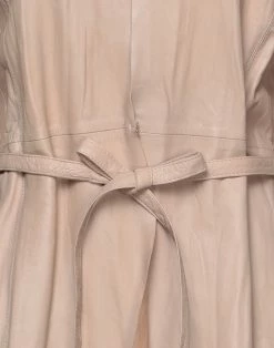 leather, belt, solid color, single-breasted , hook-and-eye closure, round collar, multipockets, long sleeves, unlined, contains non-textile parts of animal origin, outerwear