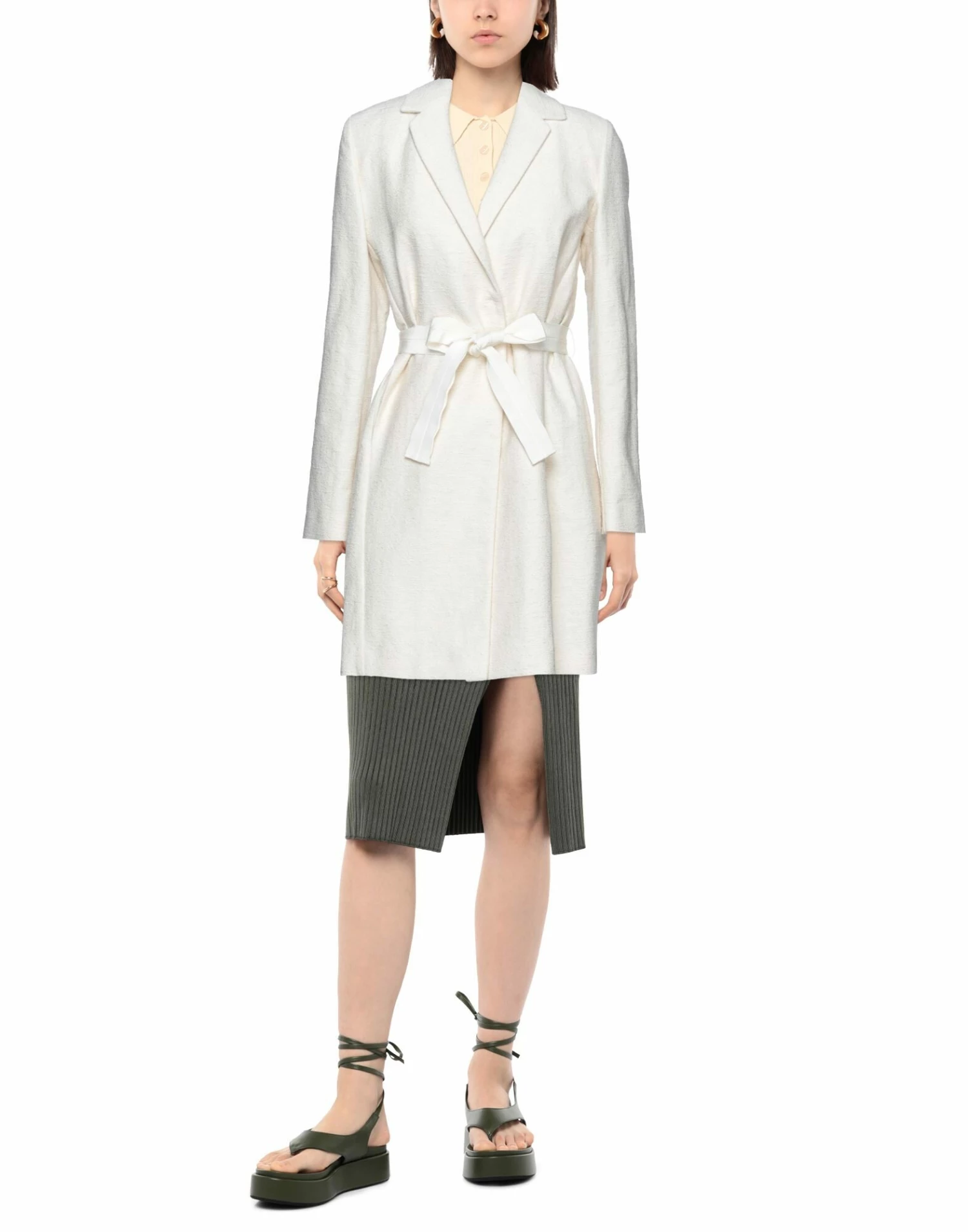 tweed, sash, solid color, lapel collar, single-breasted , long sleeves, unlined, snap buttons fastening, multipockets