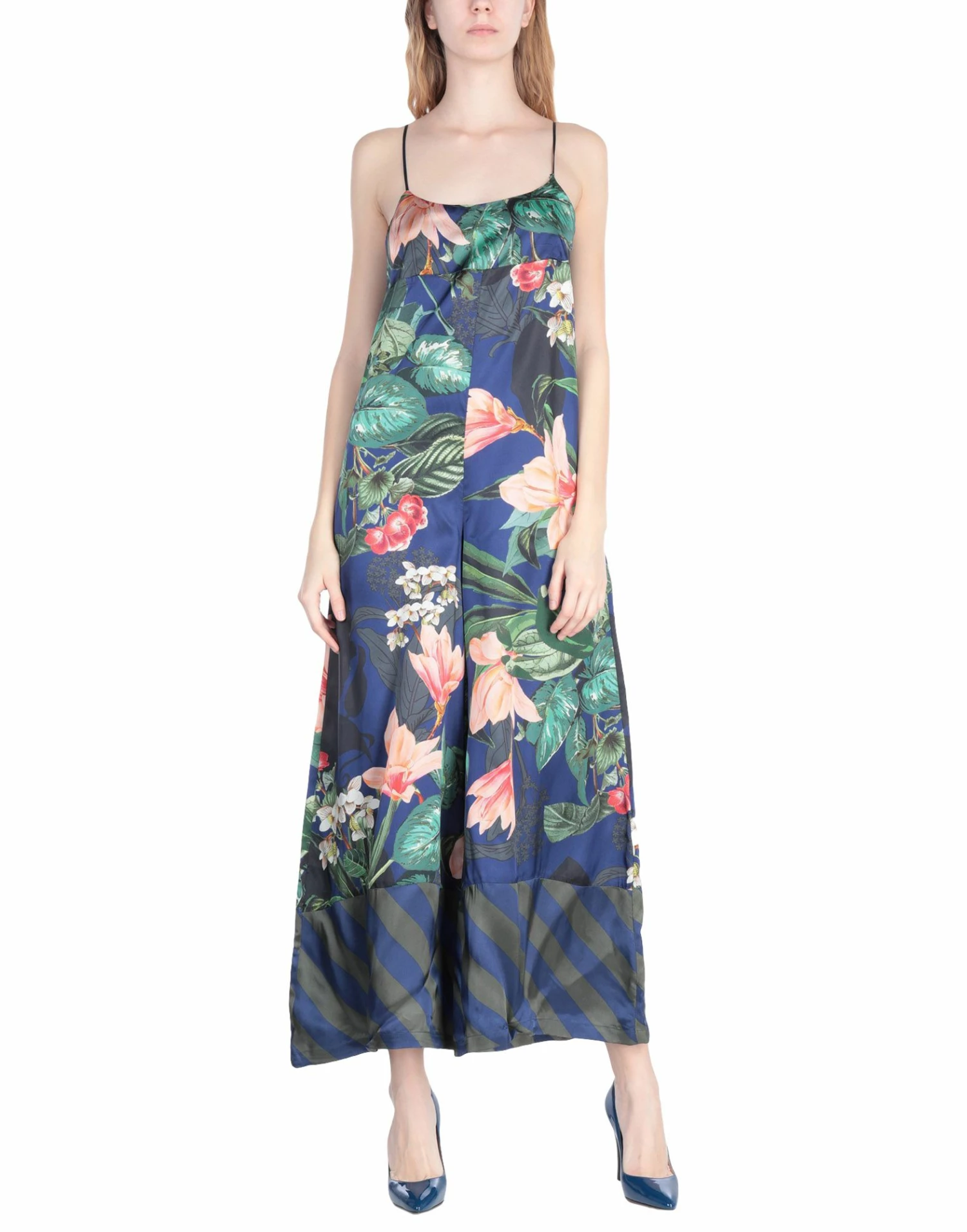 satin, no appliqués, floral design, v-neck, sleeveless, multipockets, zip, side closure