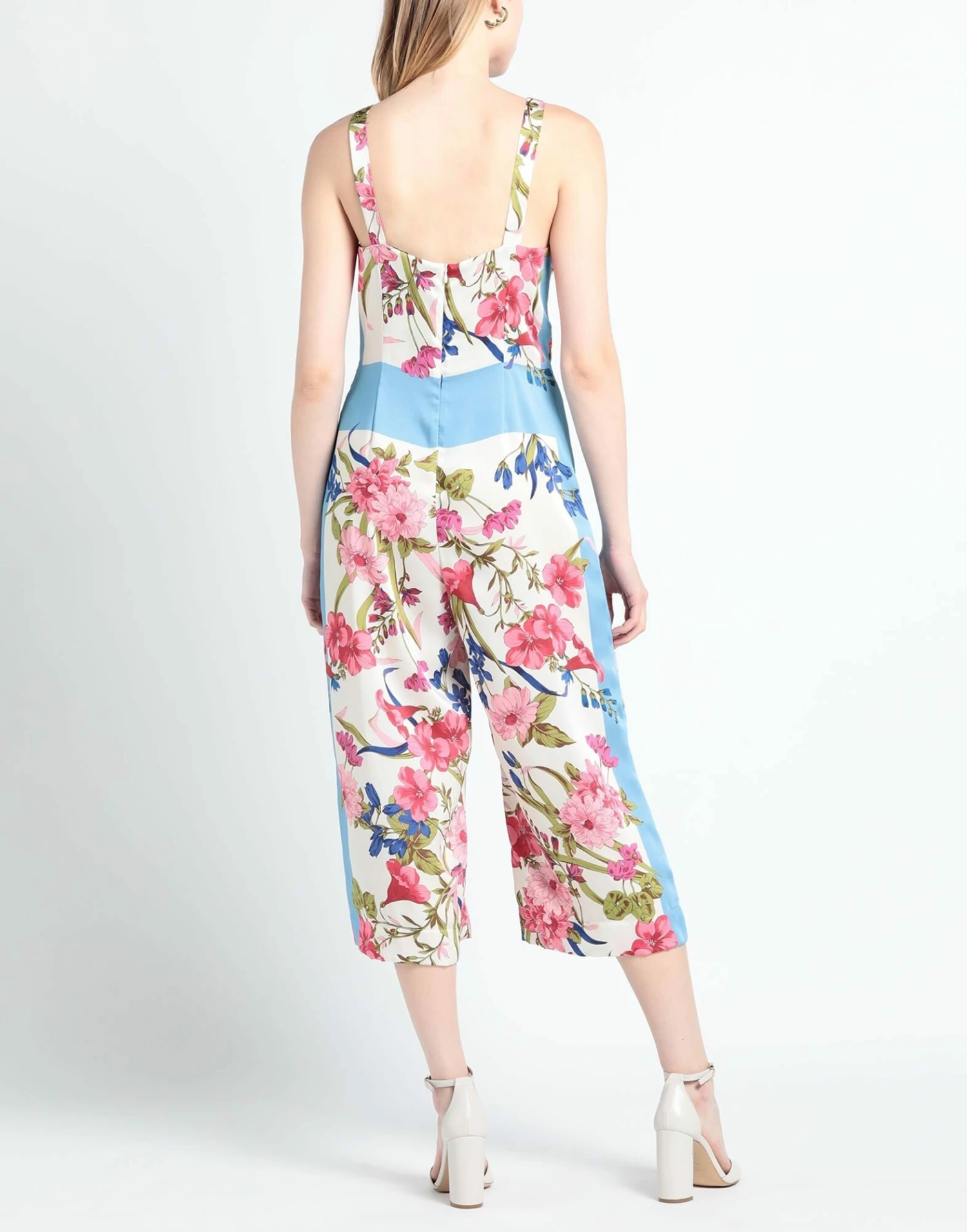 crepe, no appliqués, multicolor pattern, floral design, deep neckline, sleeveless, unlined, zipper closure, no pockets