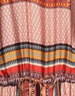 satin, no appliqués, ethnic design, v-neck, short sleeves, unlined, no pockets, rear slit