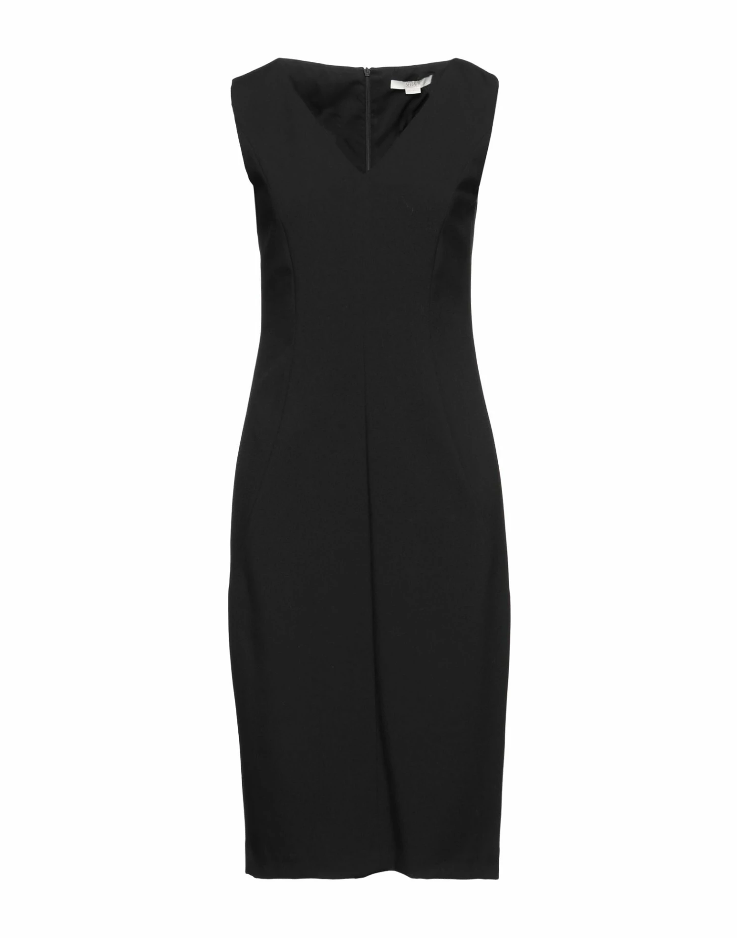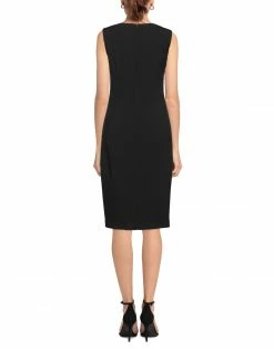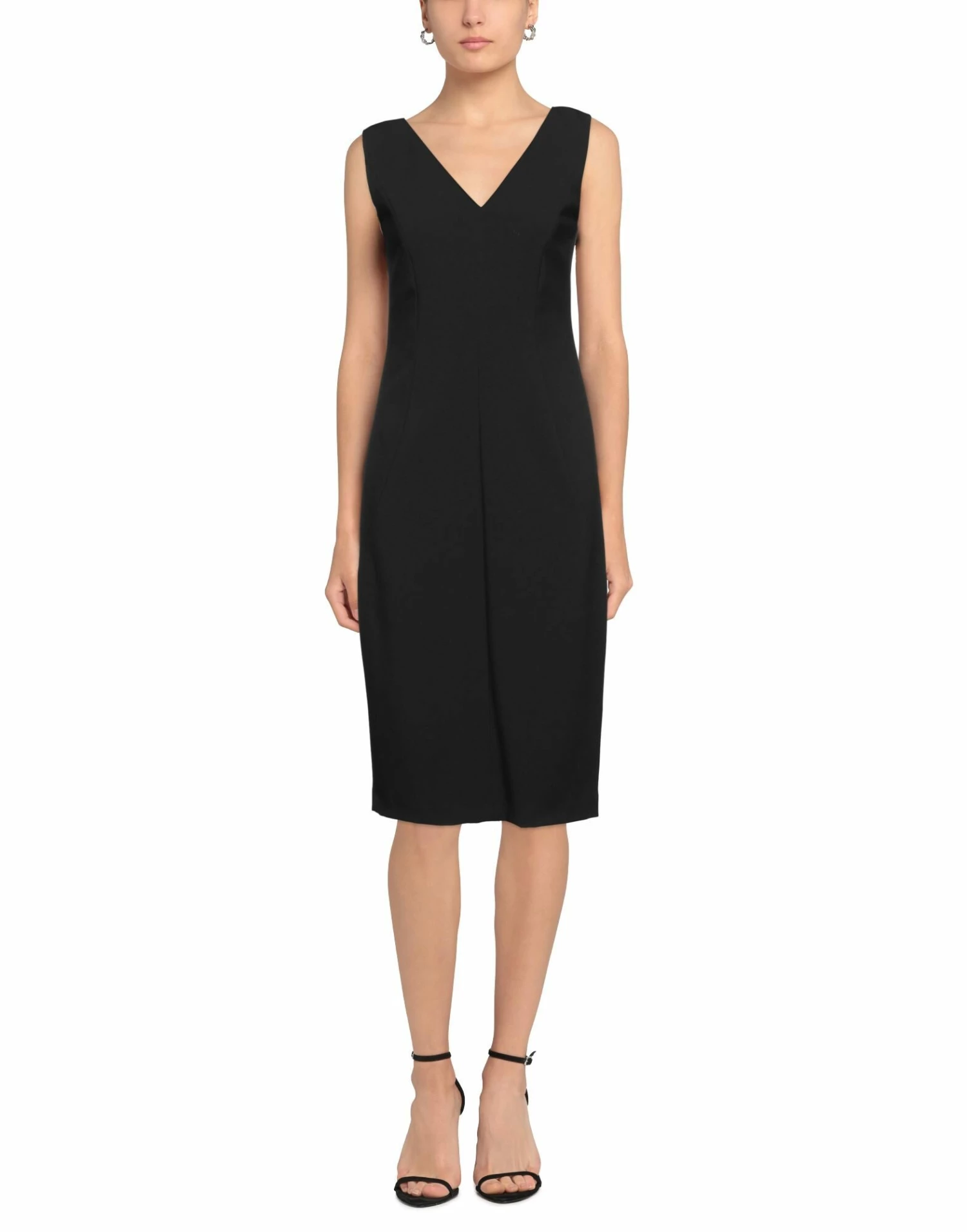 plain weave, no appliqués, solid color, v-neck, sleeveless, fully lined, zipper closure, no pockets, rear slit, stretch