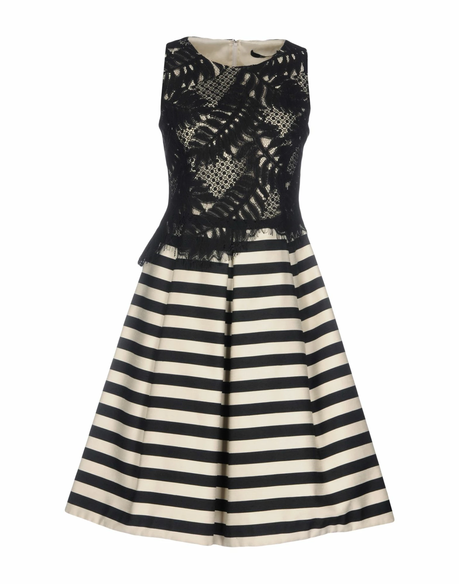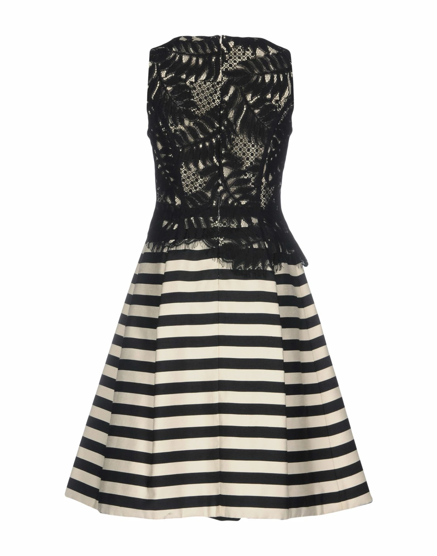 plain weave, lace, no appliqués, stripes, round collar, sleeveless, no pockets, fully lined, rear closure, zip, trapeze style