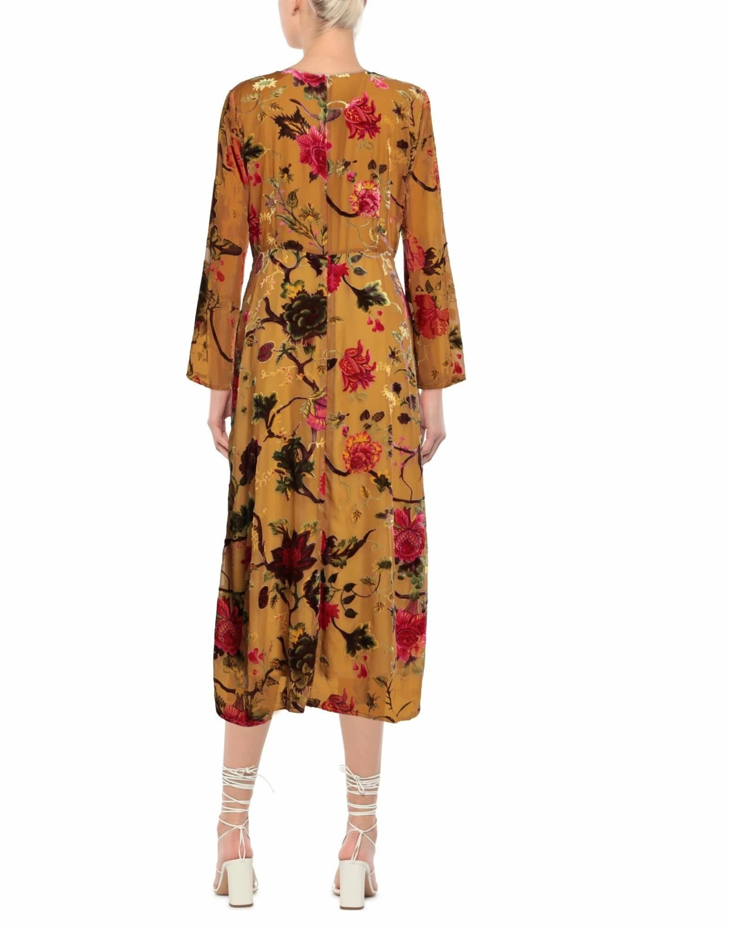 velvet, plain weave, no appliqués, floral design, v-neck, long sleeves, partially lined interior, zipper closure, no pockets